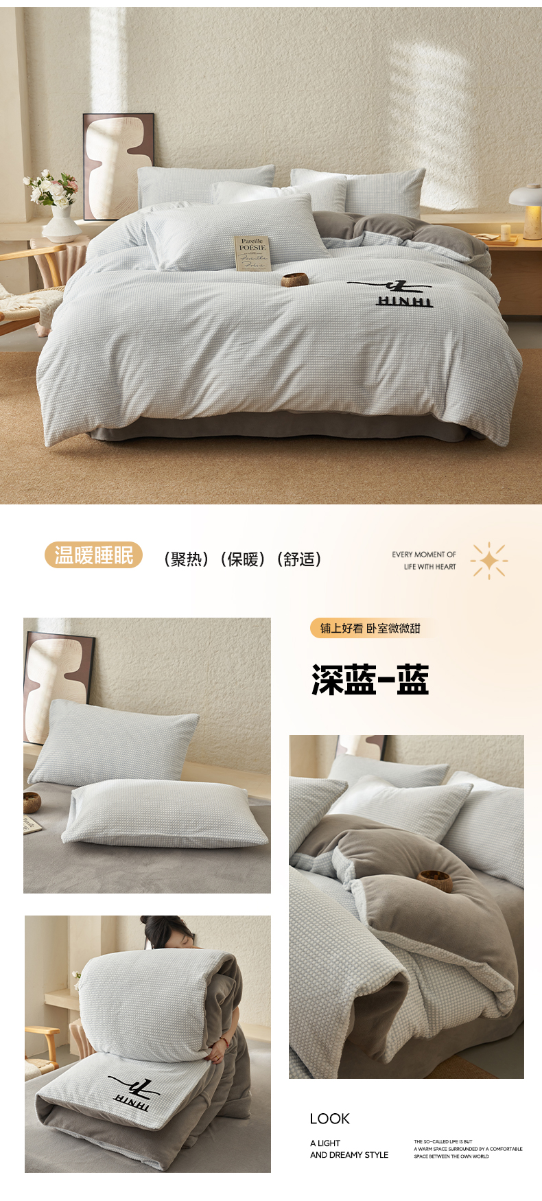 早晨家纺 2025新款深蓝款阳离子提花牛奶绒四件套 深蓝-豆沙