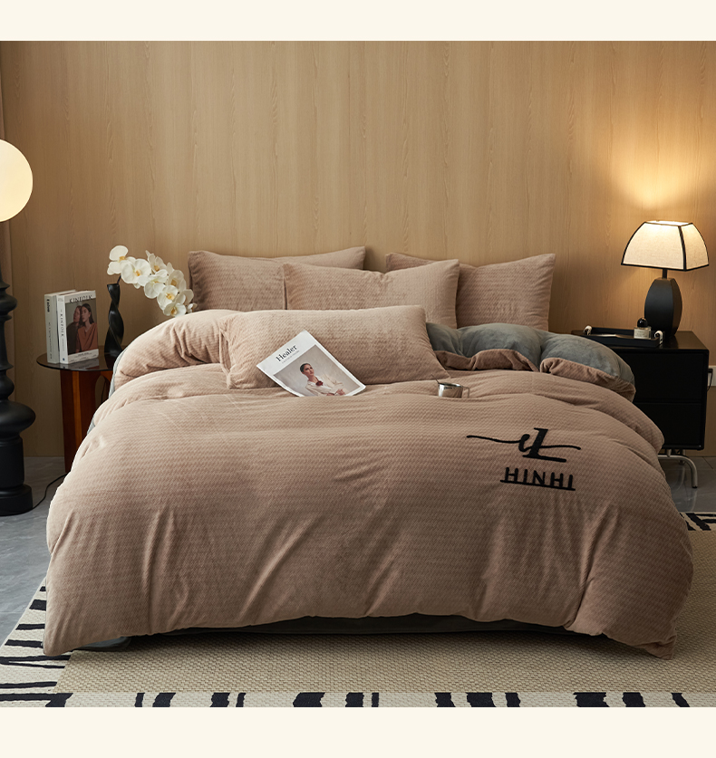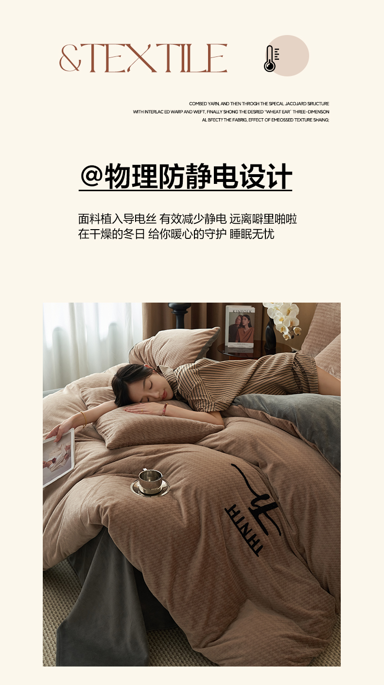 商品名称:早晨家纺 2025新款流星款阳离子提花兔毛牛奶绒四件套 流星-豆沙