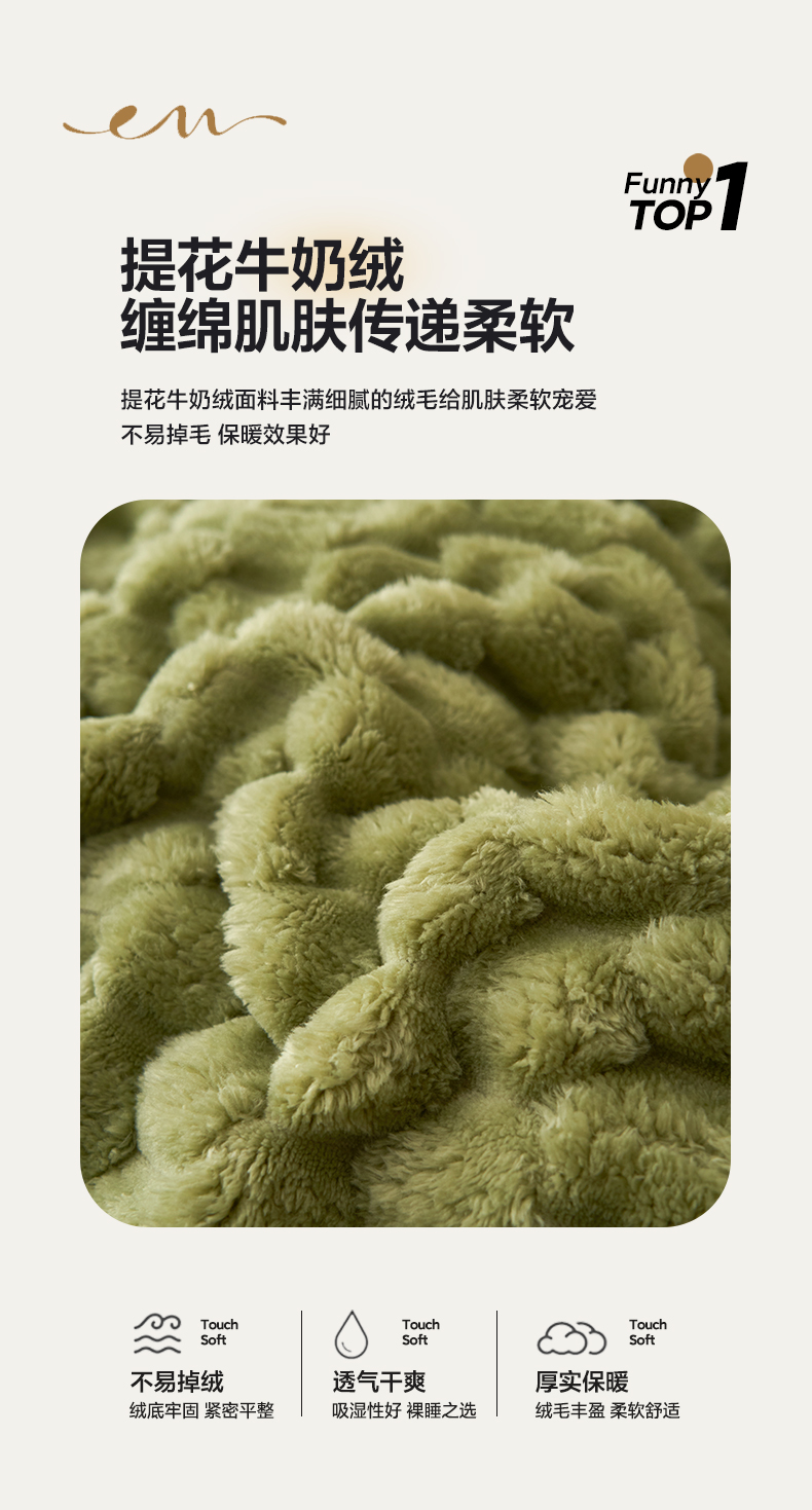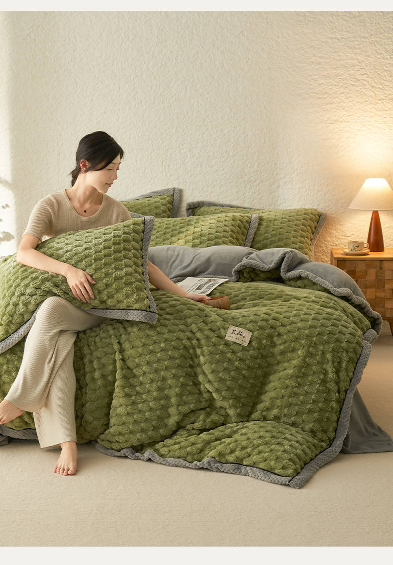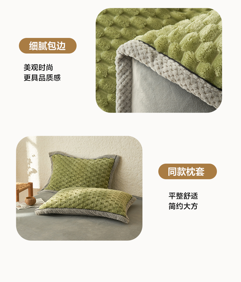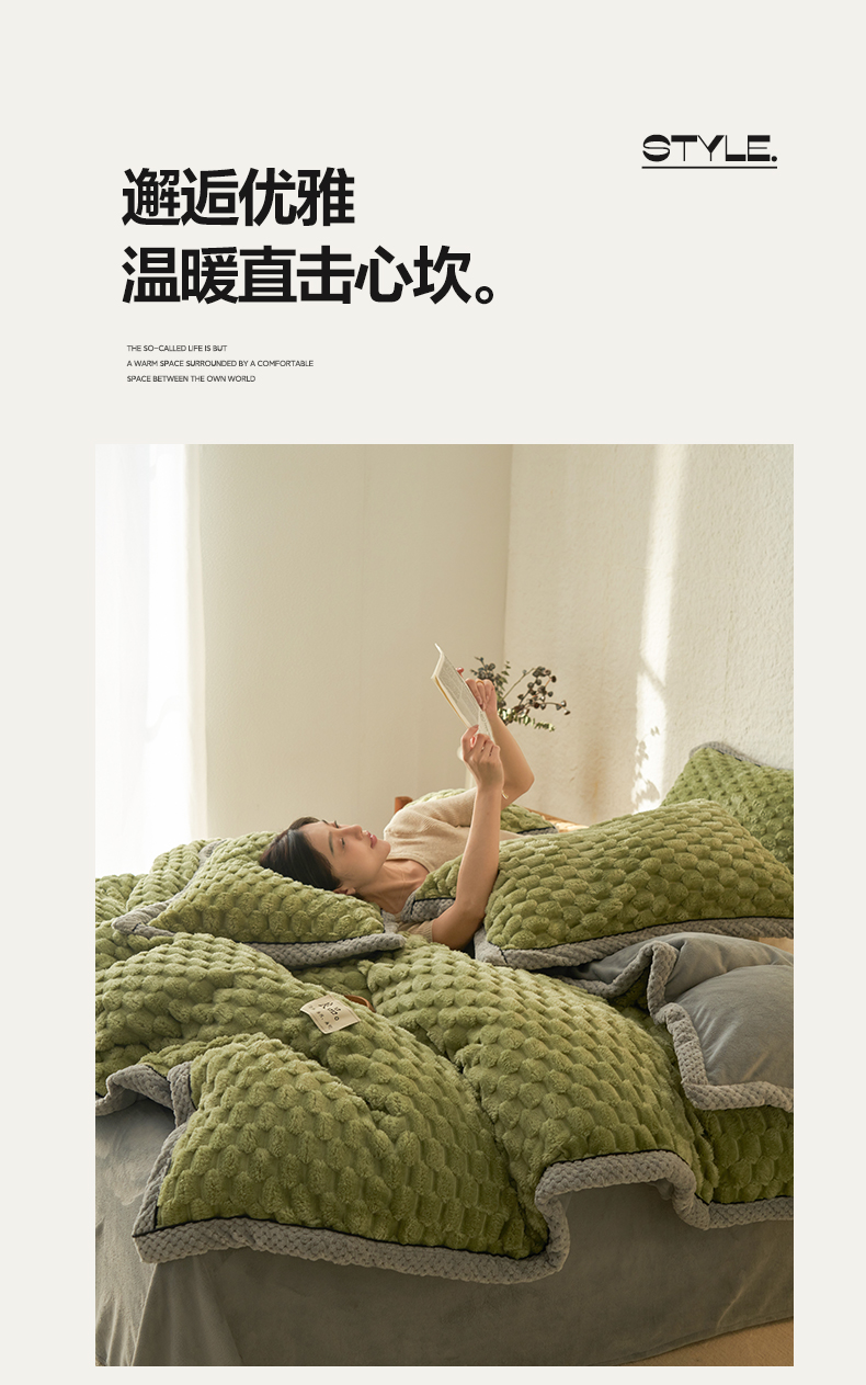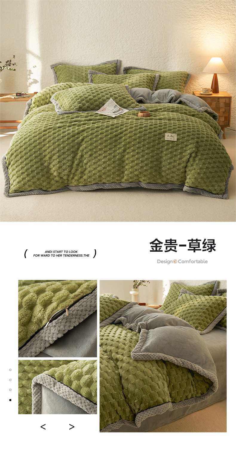 商品名称:早晨家纺 2025新款金贵款牛奶绒提花四件套 金贵-草绿
