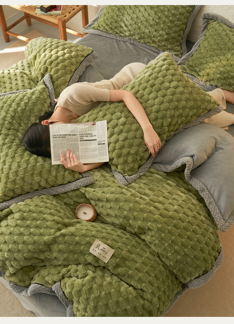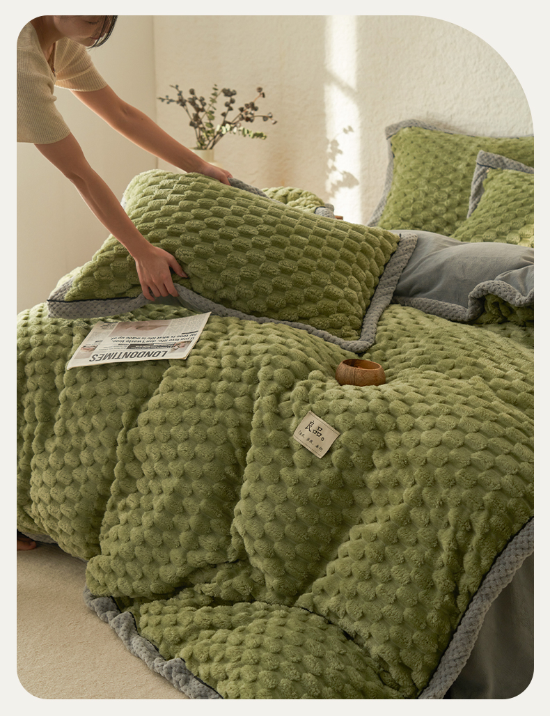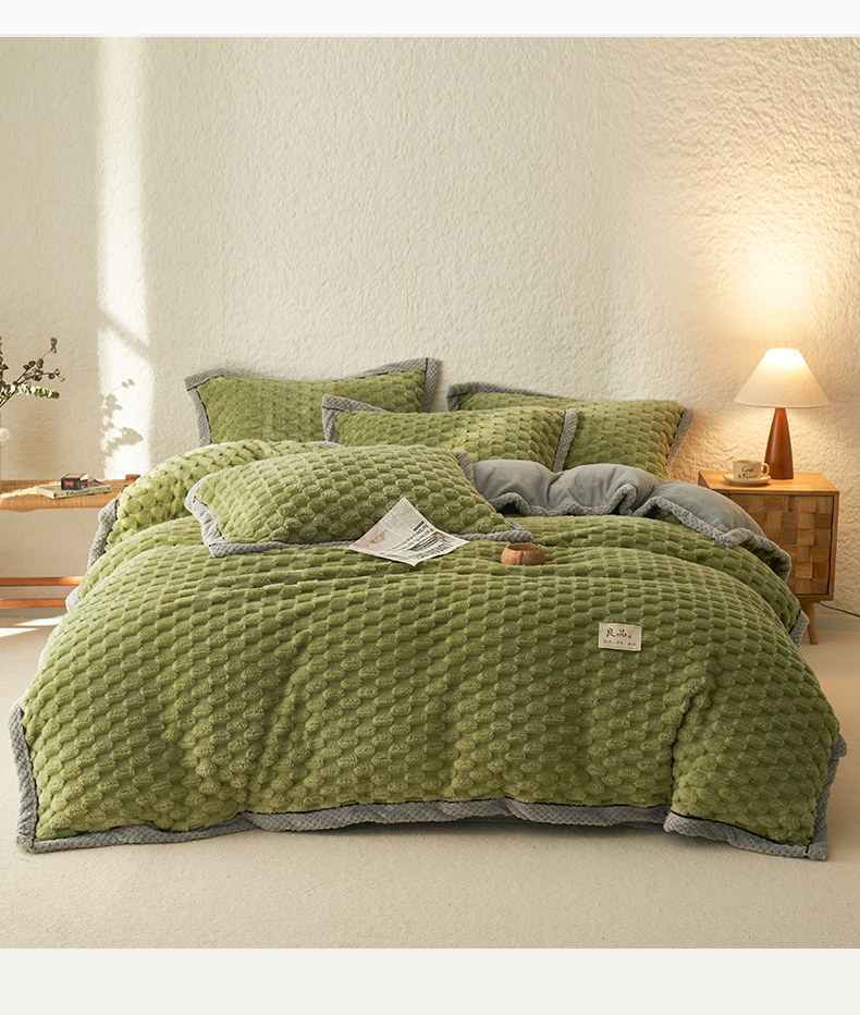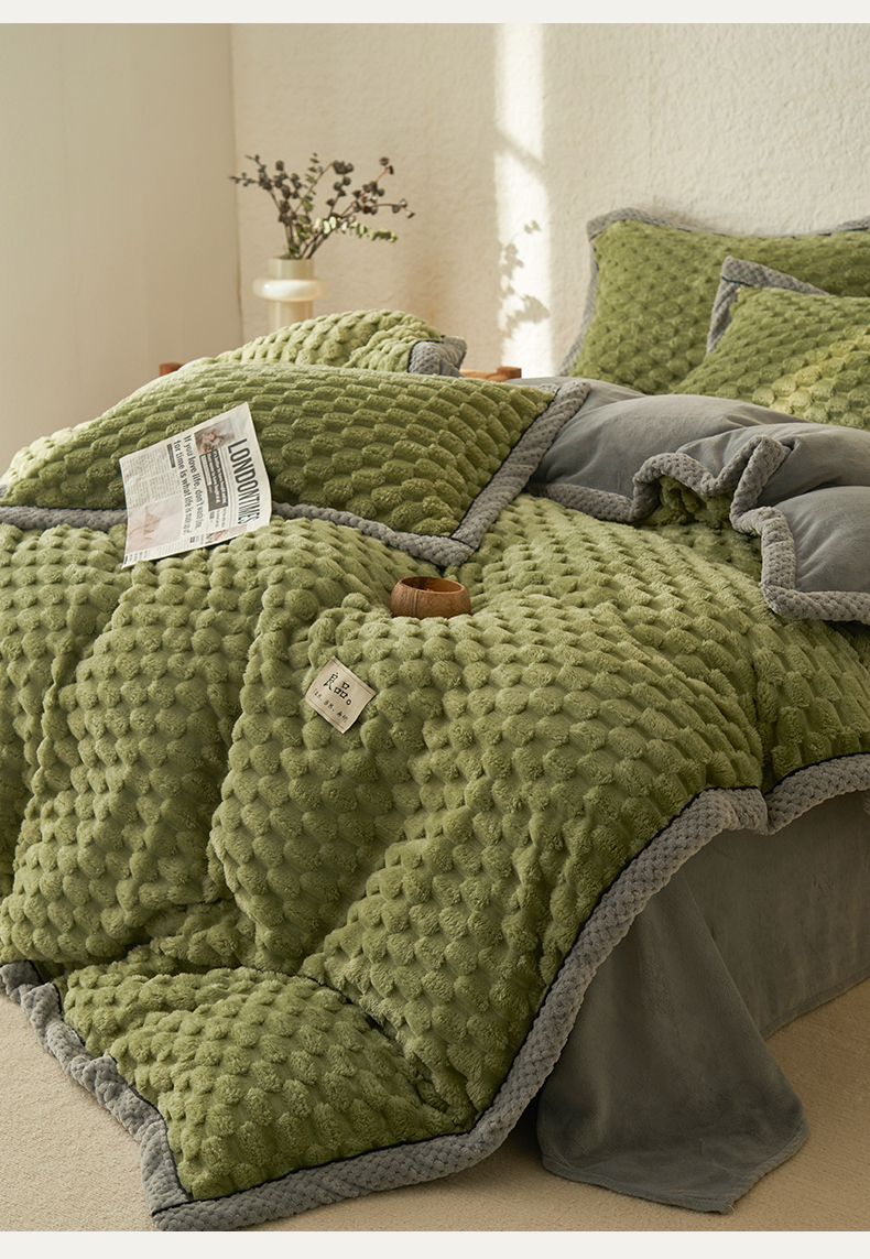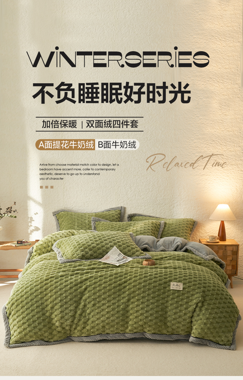 商品名称:早晨家纺 2025新款金贵款牛奶绒提花四件套 金贵-草绿