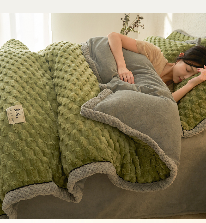 早晨家纺 2025新款金贵款牛奶绒提花四件套 金贵-草绿