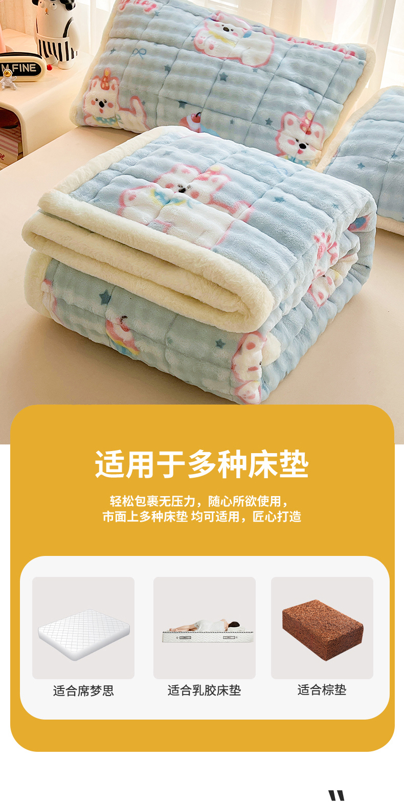 (总)梵朴 2025新款牛奶绒泡泡兔毛绒床垫学生宿舍床褥子床护垫(大床款印花系列)-场景二,爱心蝴蝶结绿,彩虹爱心紫,彩虹哈皮狗,繁星,黄油小熊,咖底蛋糕熊,蕾丝蝴蝶结紫,梦幻太空人,趴趴熊,顽皮小熊猫,星黛露粉,星星小熊灰,音乐狗蓝--,云纹爱心粉