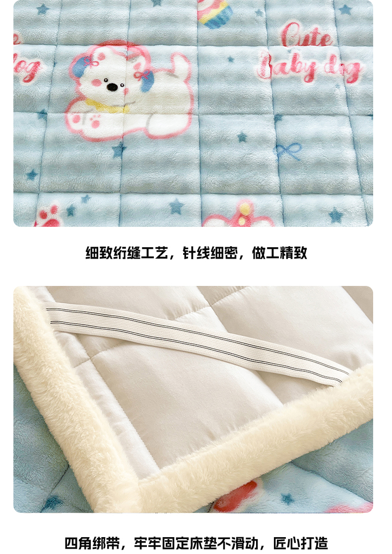 • 91家纺网 家纺一手货源 找家纺 (总)梵朴 2025新款牛奶绒泡泡兔毛绒床垫学生宿舍床褥子床护垫(大床款印花系列)-场景二,爱心蝴蝶结绿,彩虹爱心紫,彩虹哈皮狗,繁星,黄油小熊,咖底蛋糕熊,蕾丝蝴蝶结紫,梦幻太空人,趴趴熊,顽皮小熊猫,星黛露粉,星星小熊灰,音乐狗蓝--,云纹爱心粉