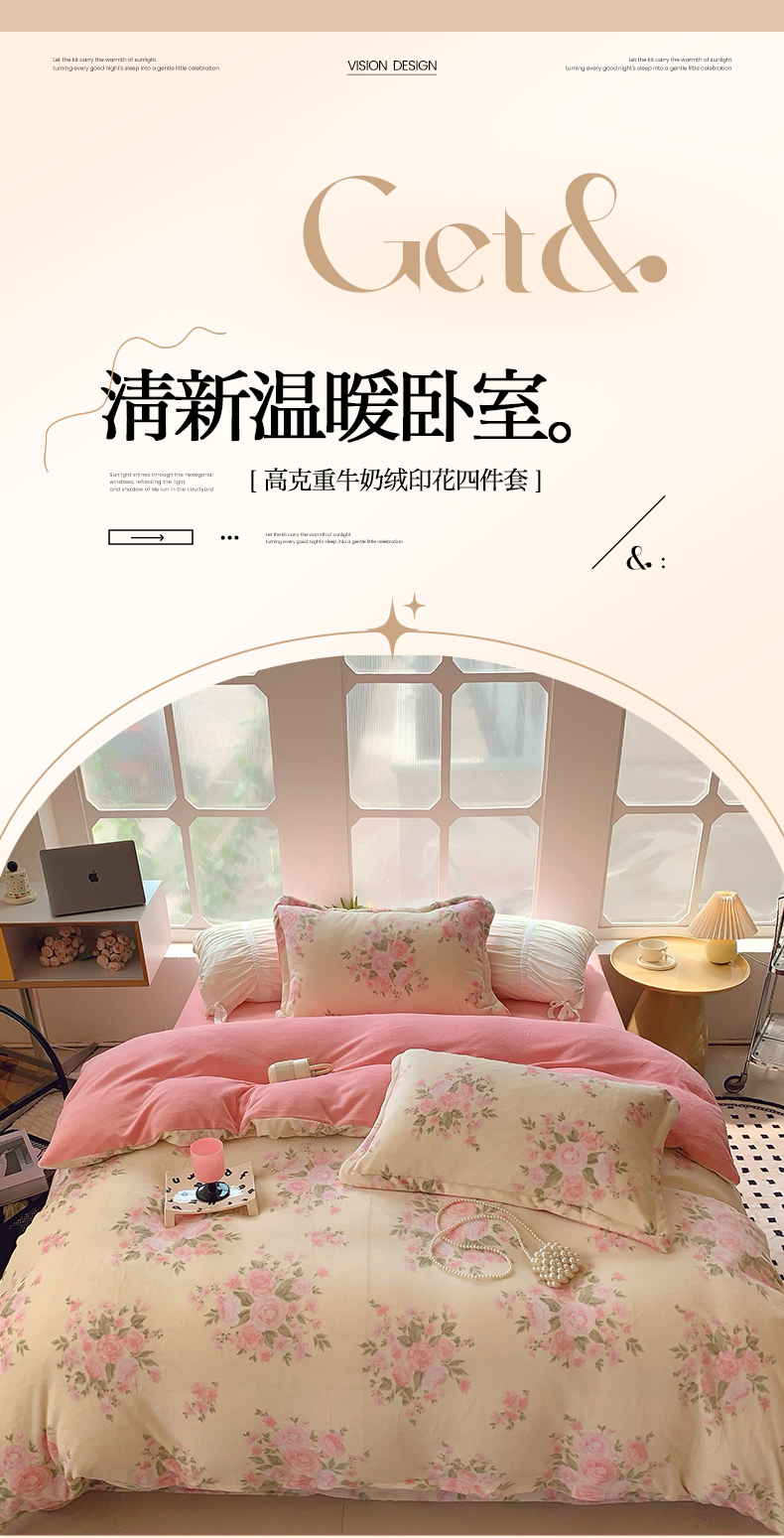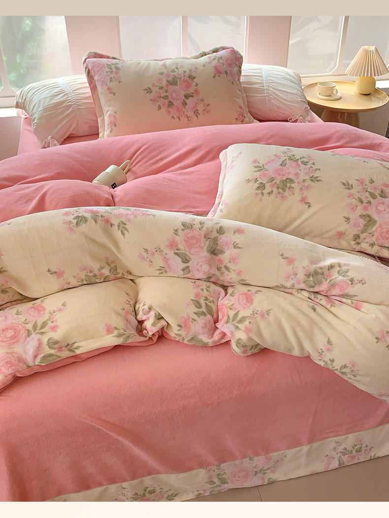 商品名称:莱豫家纺 2025新款加厚牛奶绒三件套四件套保暖不静电 玫瑰粉