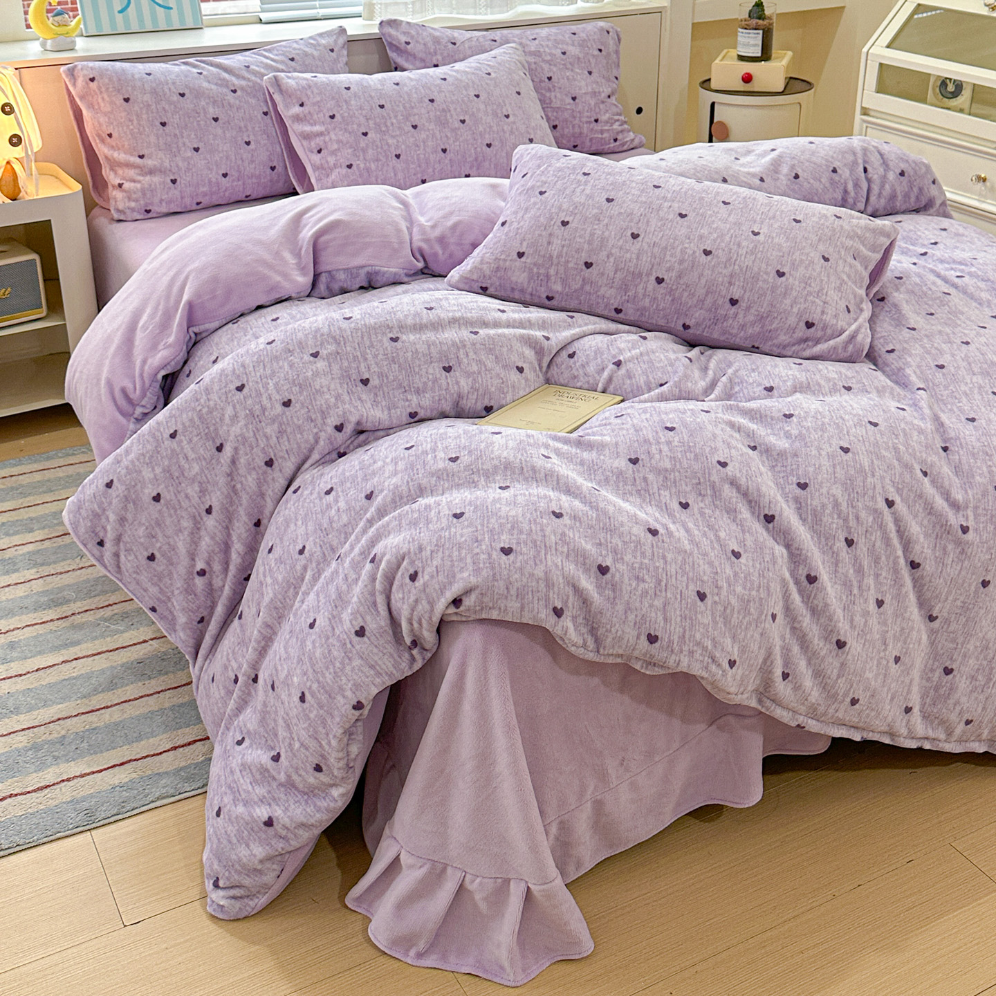 商品名称:梦莱斯 2025新款加厚保暖双面牛奶绒四件套 心动-紫