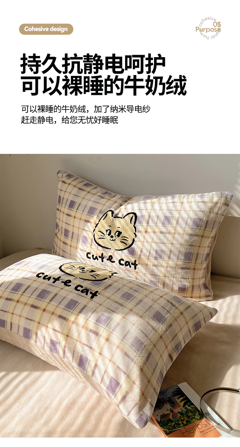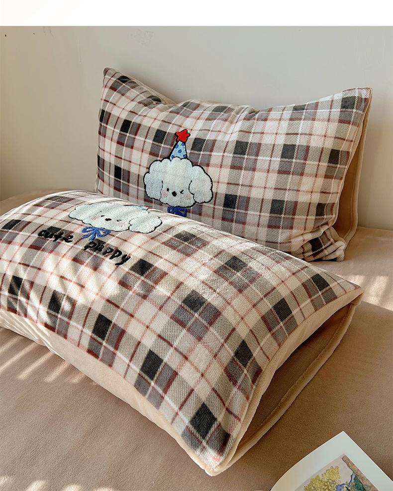 (总)轻奢坊 2025新款牛奶绒ins可爱贴布绣四件套,爱心乖狗,洛丽塔猫,苹果黑猫,晚安小狗,笑脸红格,笑脸咖格