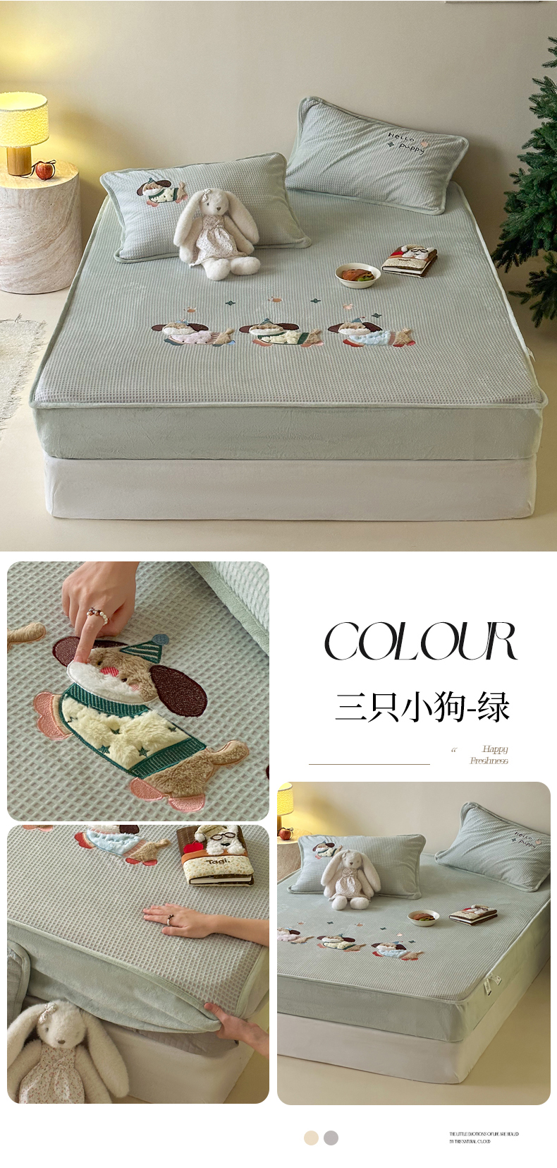 (总)Sweet dreams甜梦 2025新款高克重牛奶绒印花夹棉床笠圣诞款,冬日小猫粉,糖豆,雪人奇趣园