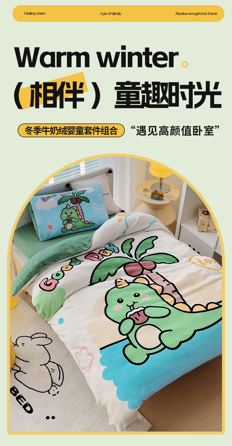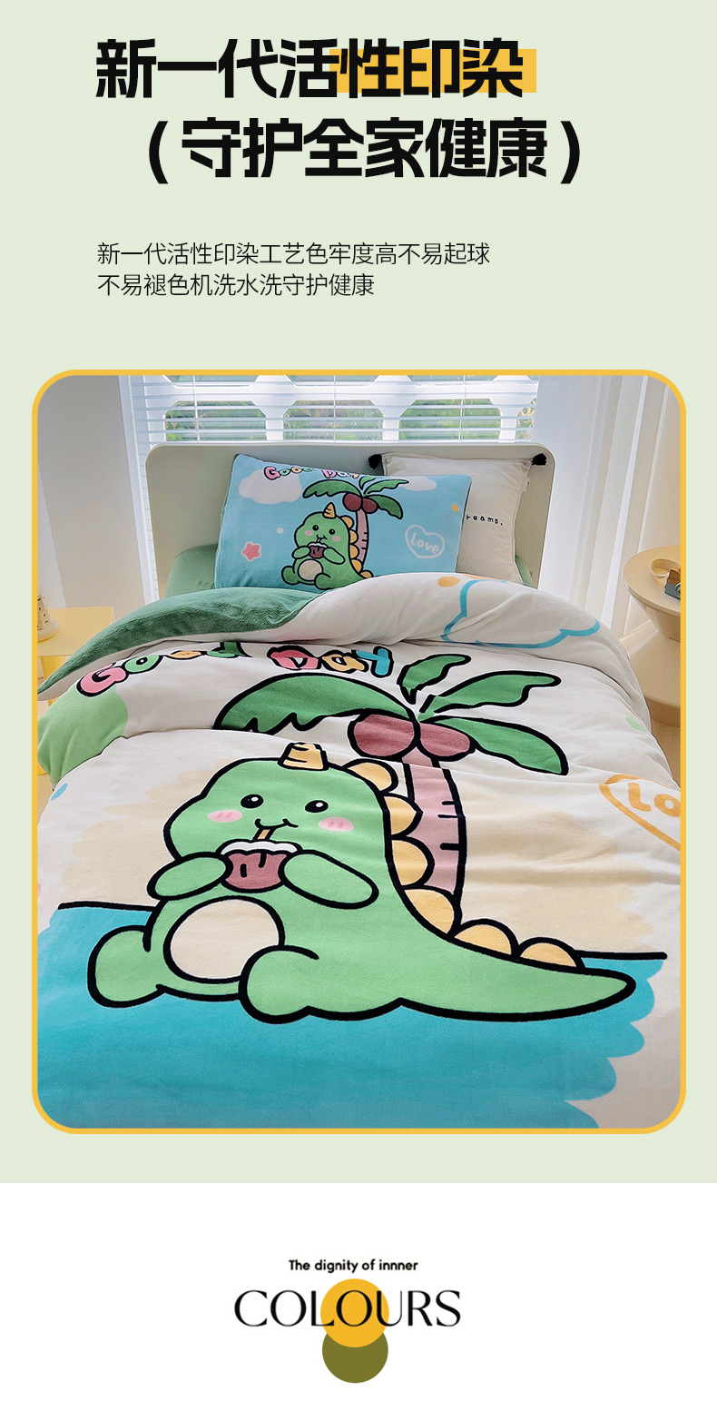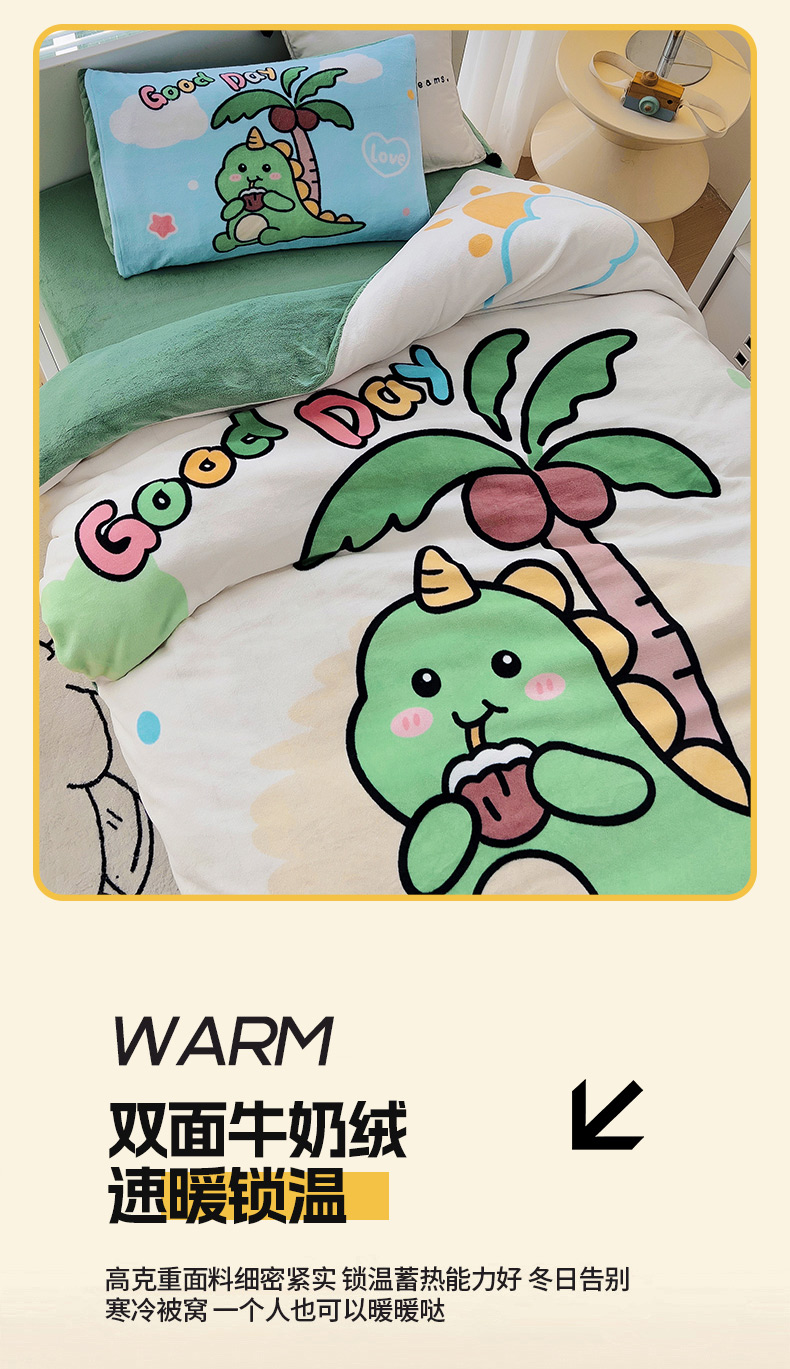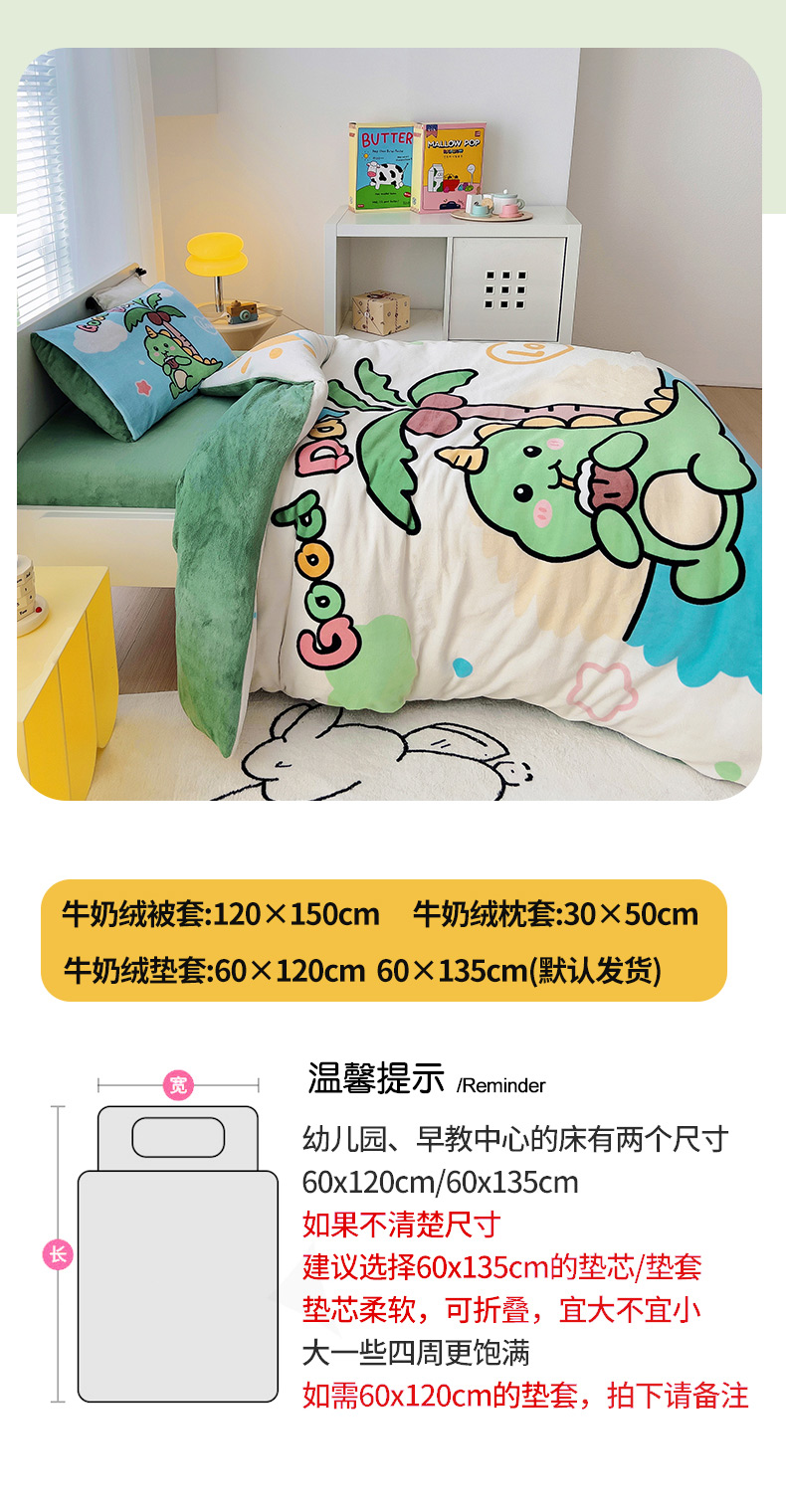 当前位置: 91家纺网 > 商品网购 > 床品套件 > 三件套 > 嗨生活 2025新款牛奶绒数码印花原创大版卡通幼儿园套件幼儿园三件套 卡通小恐龙