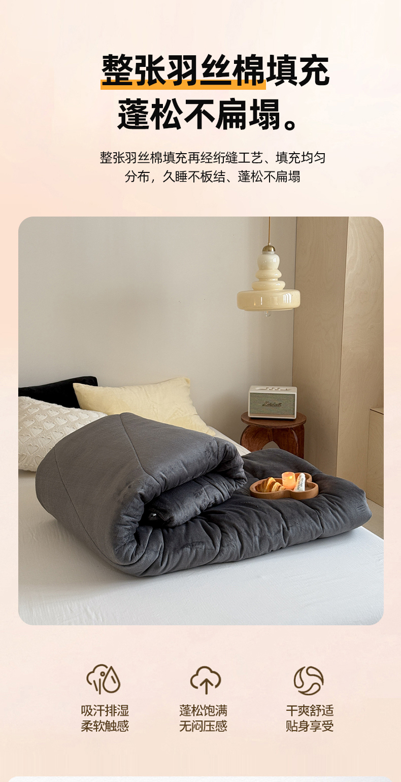 申龙家纺 2025新款牛奶绒冬被 深灰