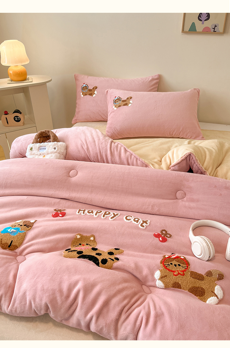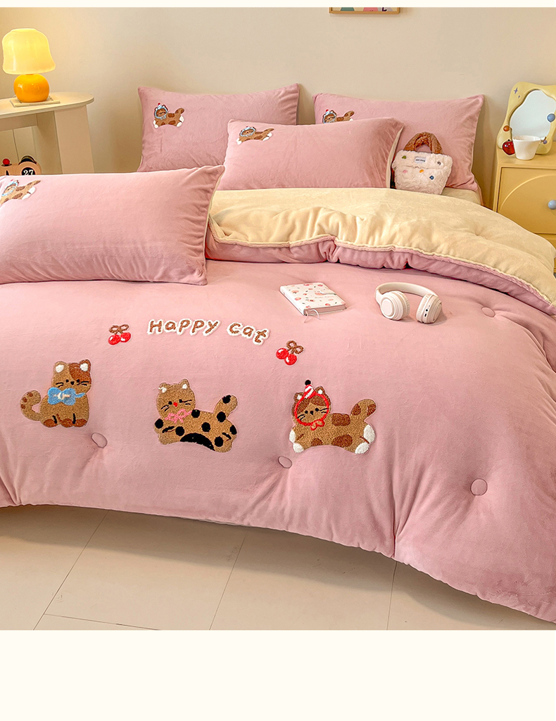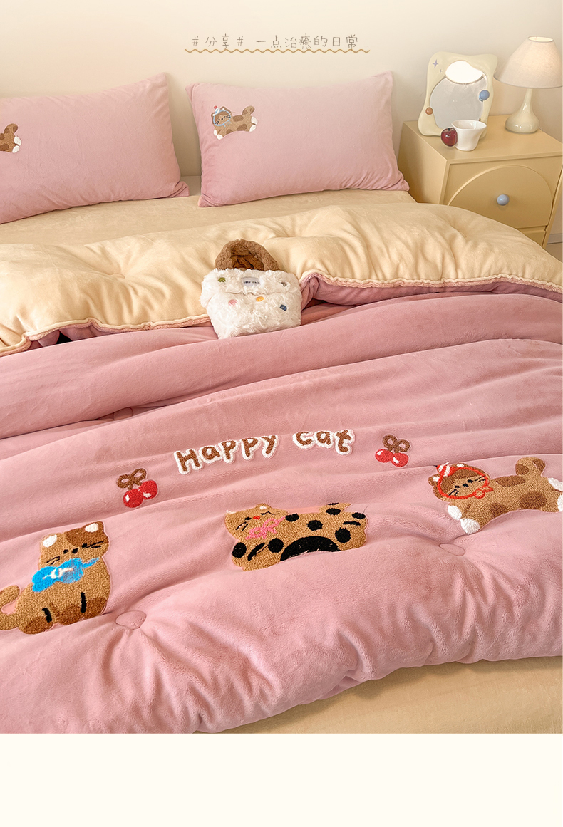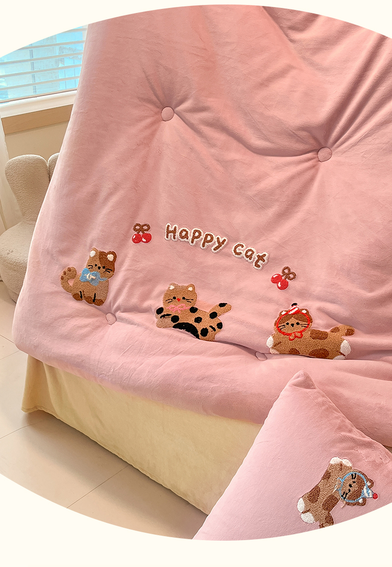 商品名称:换种生活 2025新款A类牛奶绒毛巾绣冬被被子被芯 萌趣猫