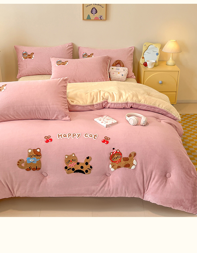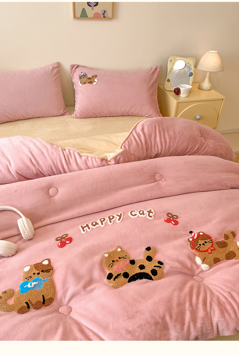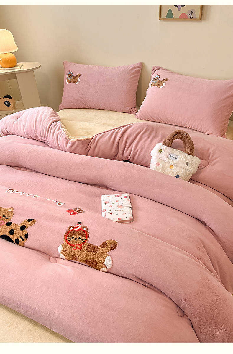 商品名称:换种生活 2025新款A类牛奶绒毛巾绣冬被被子被芯 萌趣猫