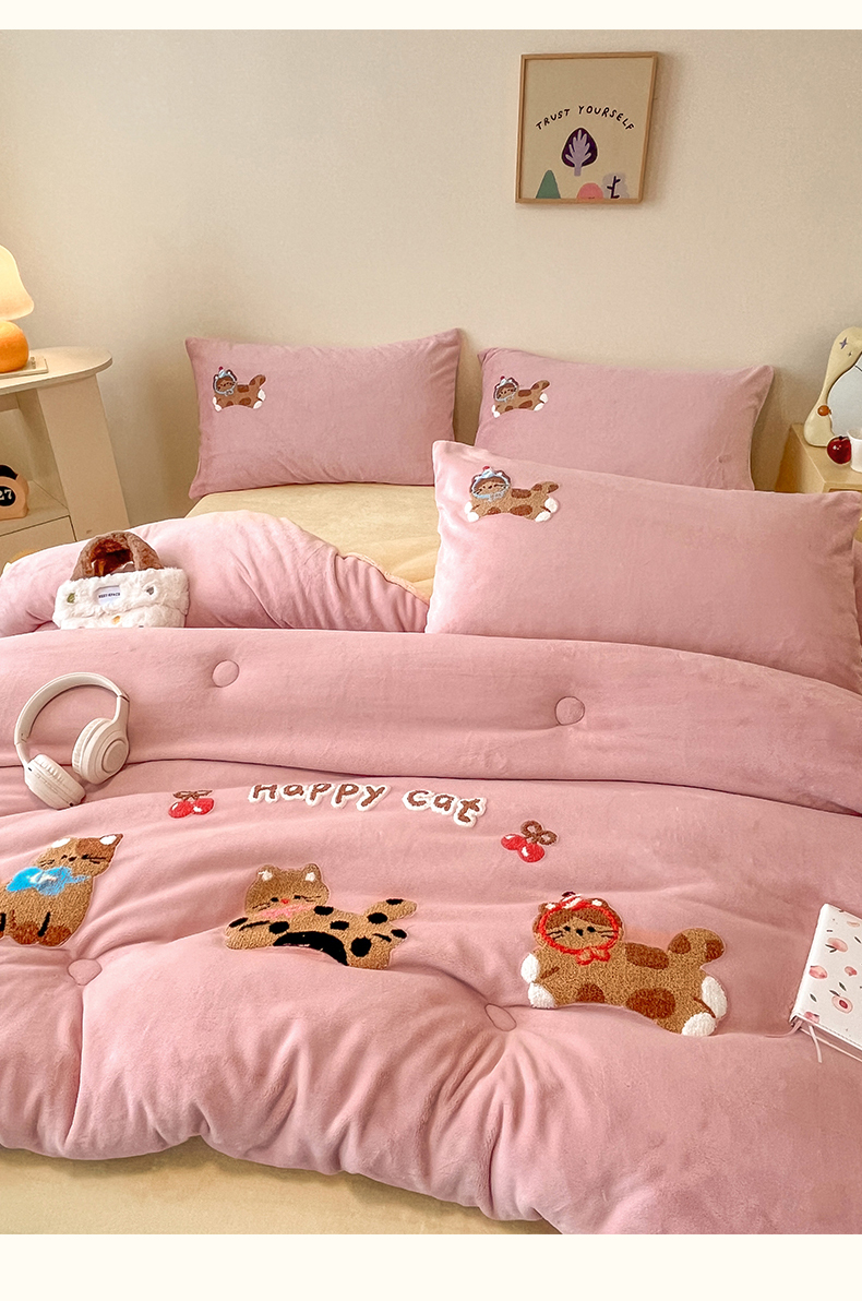 换种生活 2025新款A类牛奶绒毛巾绣冬被被子被芯 萌趣猫