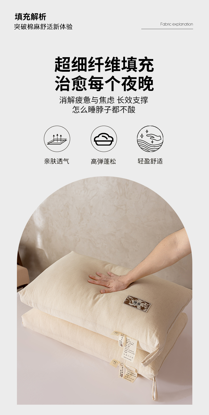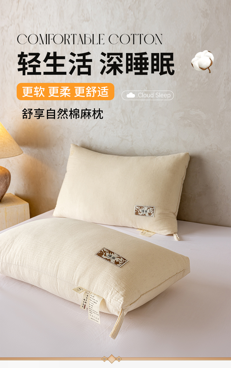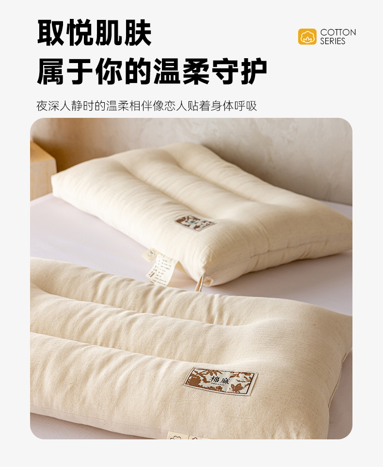 商品名称:昕科 2025新款自然棉麻枕-生态棉麻枕头成人性价比亚麻枕芯 自然棉麻枕-低枕/一只装