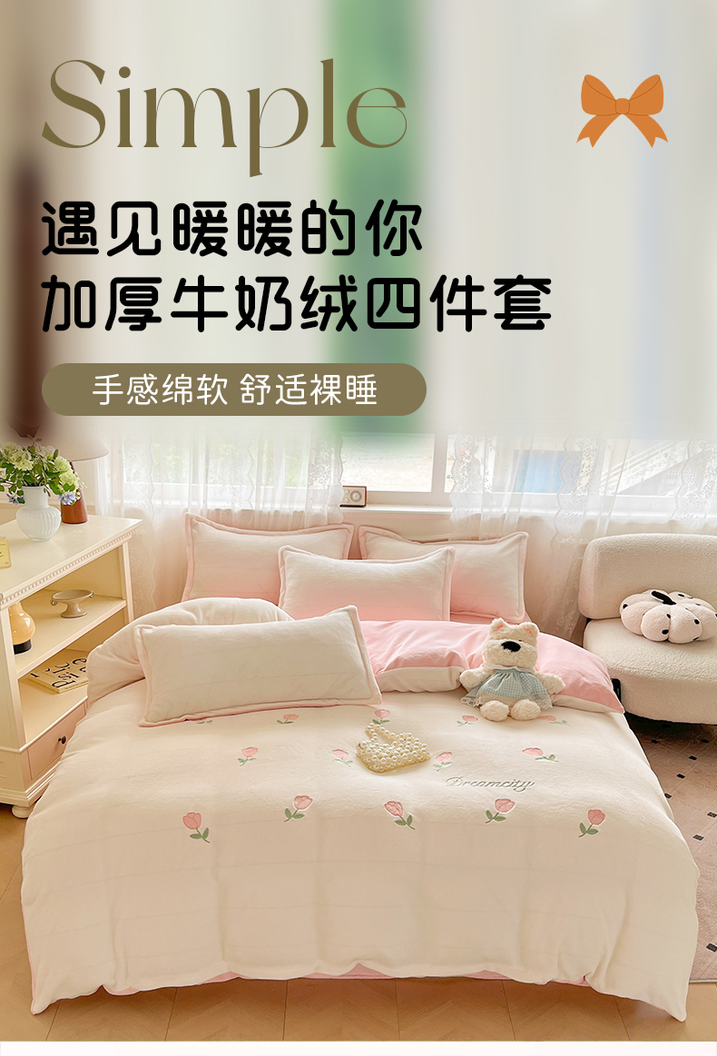 (总)伊梵居2025新款加厚贴布绣牛奶绒四件套,蝴蝶结-奶白粉,沙糖桔-奶白绿,熊猫抱竹-奶白绿,郁金香-奶白紫,郁金香-奶白绿,郁金香-奶白粉,桃子-奶白粉,桃子-奶白蓝,花朵-奶白蓝,花朵-奶白粉