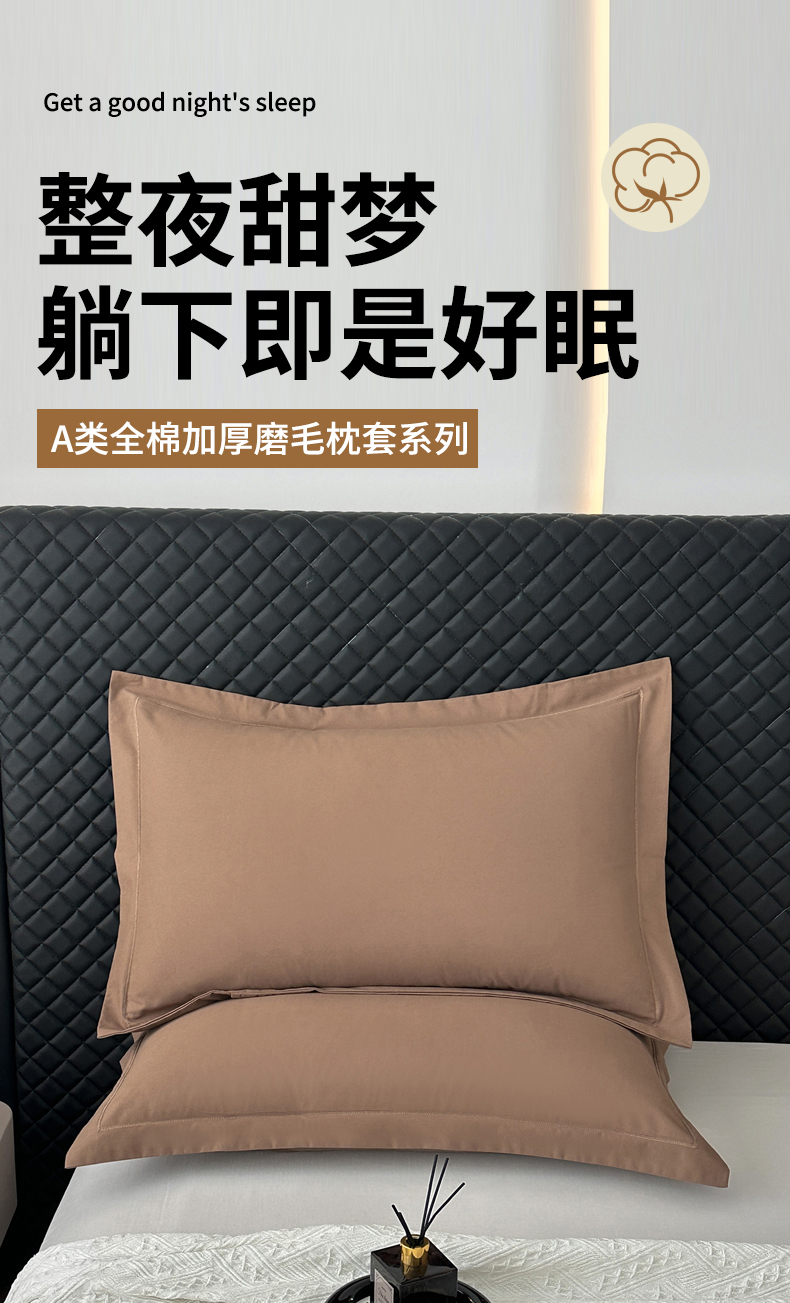 商品名称:宝时兰 2025新款加厚100%全棉枕套单品磨毛纯棉单件(带一字绣工艺) 摩卡棕