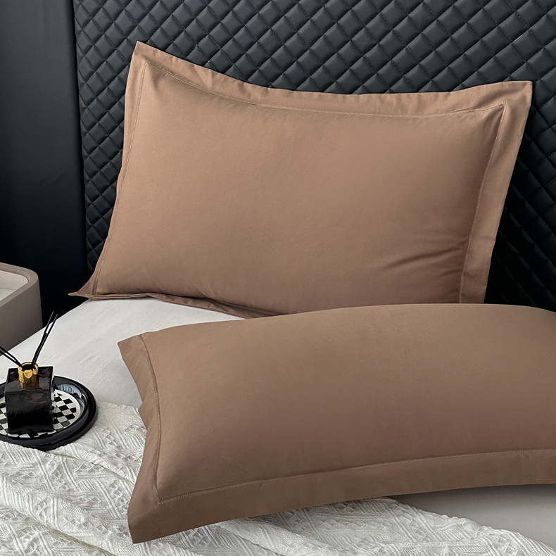 宝时兰 2025新款加厚100%全棉枕套单品磨毛纯棉单件(带一字绣工艺) 摩卡棕