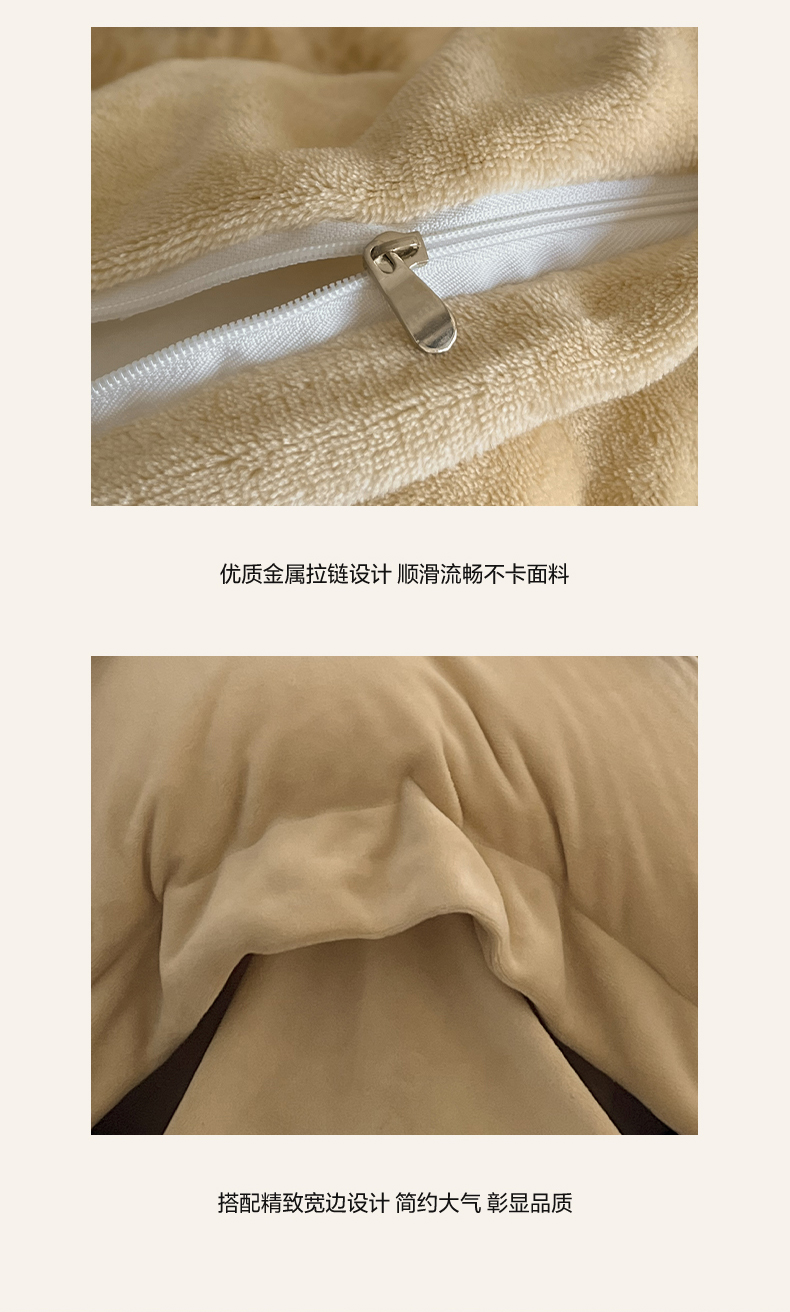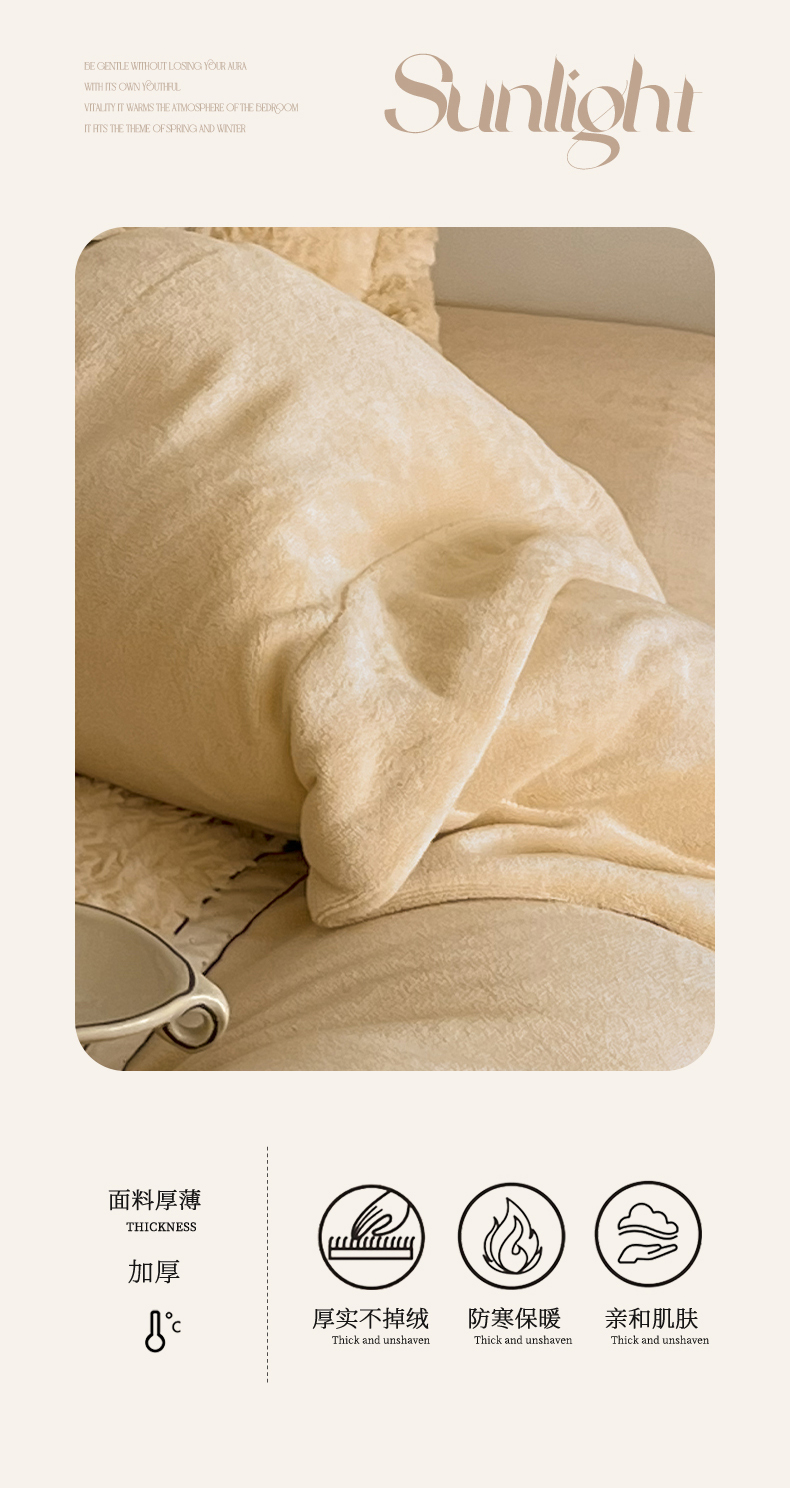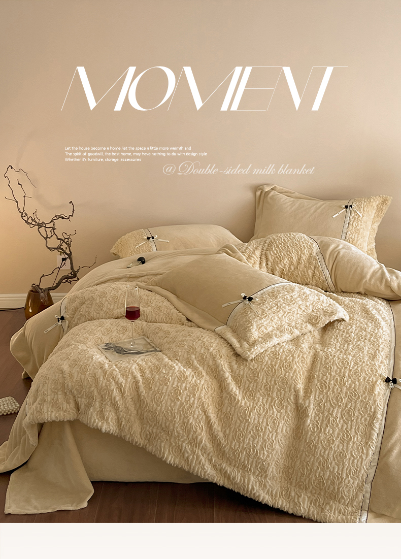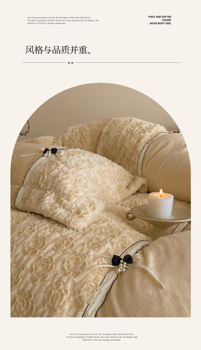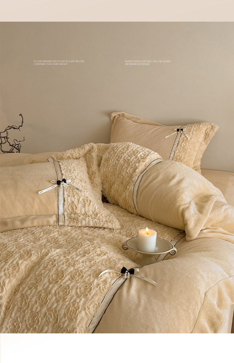 蓝邻家纺 2025新款提花兔绒双拼织带款四件套-微语系列 微语-卡其
