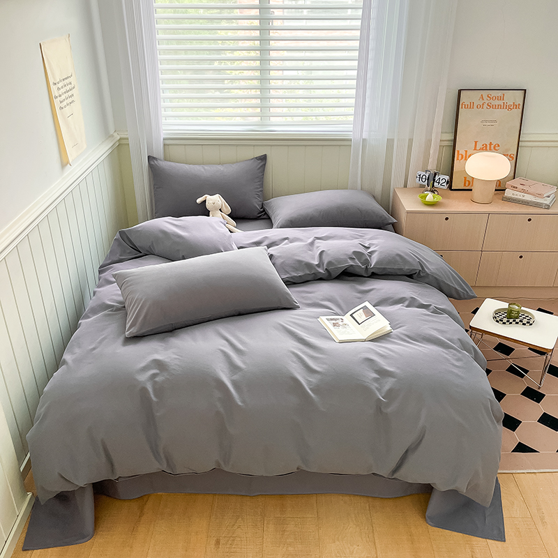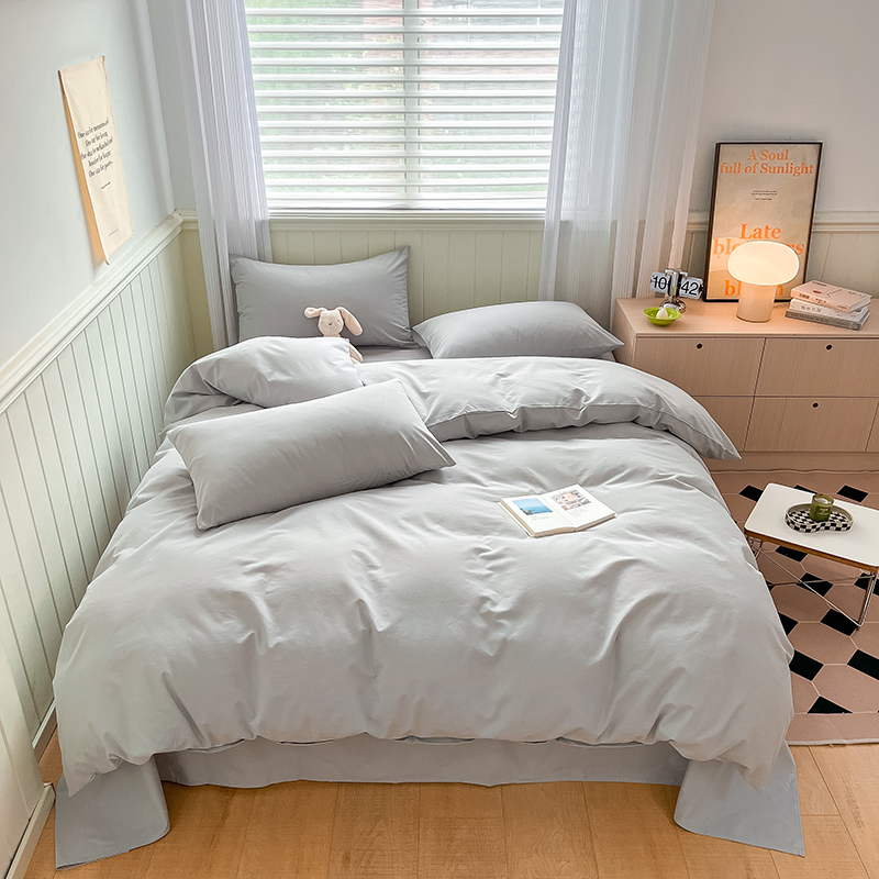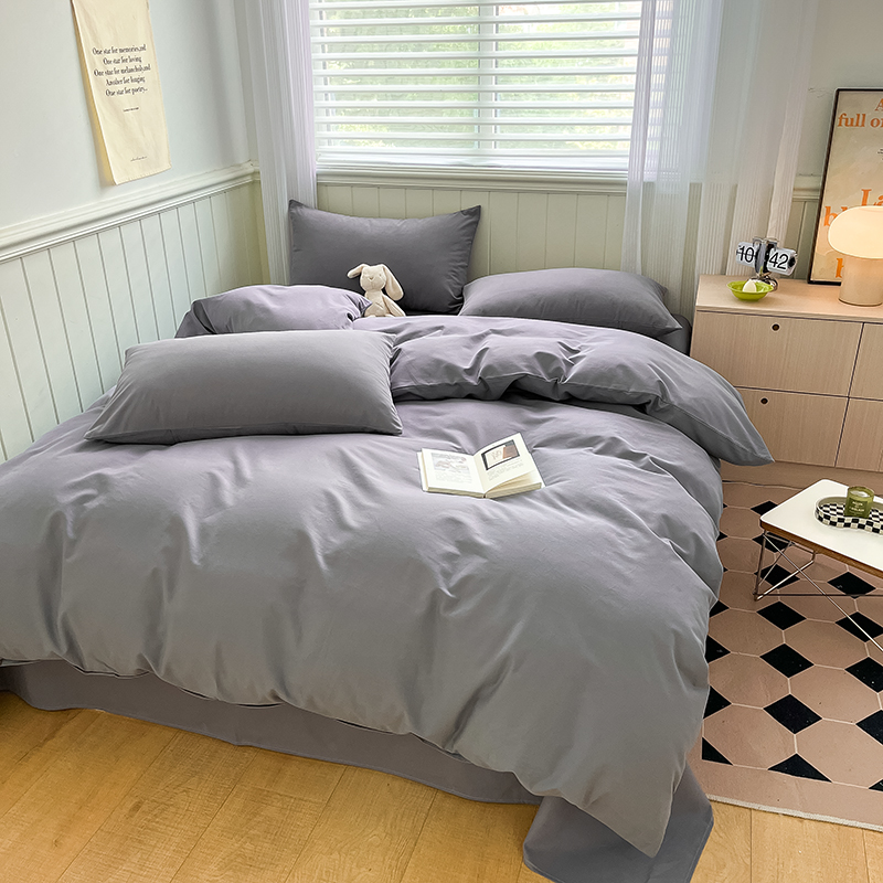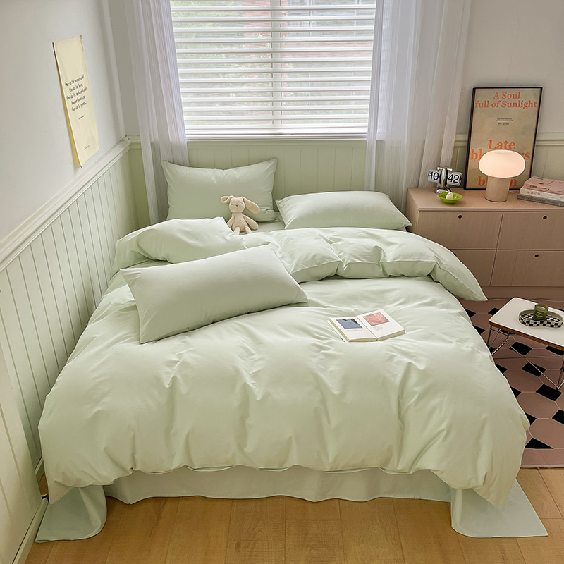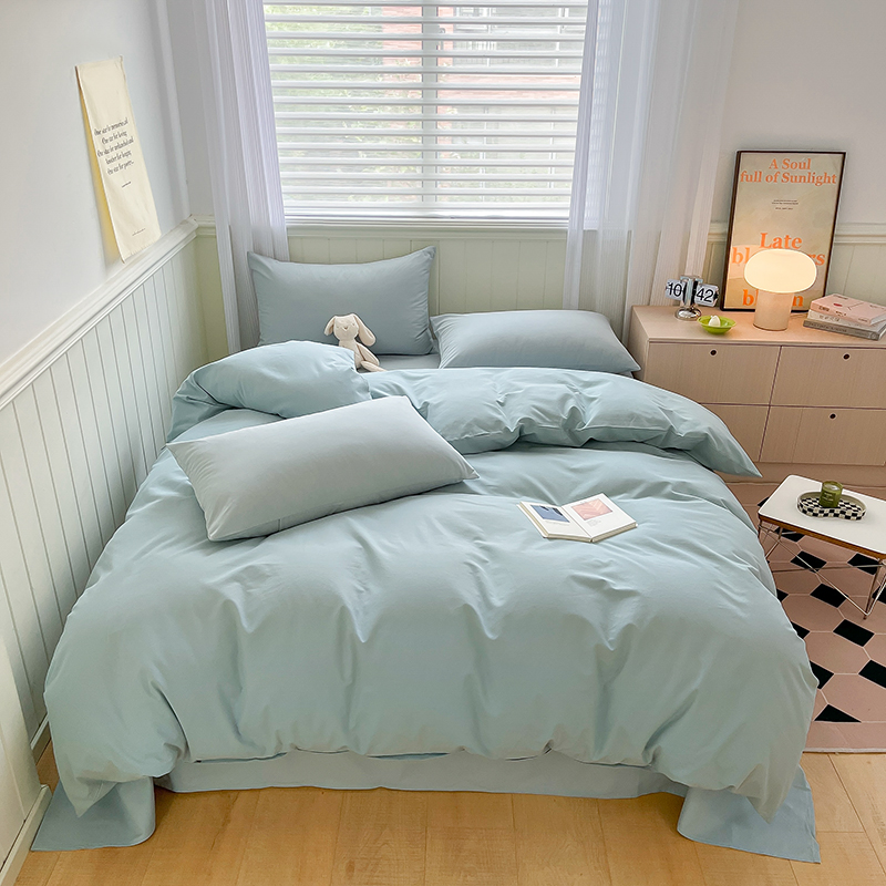 (总)蓝邻家纺 2025新款A类全棉纯棉水洗棉纯色贴标系列四件套-风格二,粉末蓝,高级灰,公主粉,贵族白,焦糖色,柠檬黄,牛仔兰,千黛紫,时尚绿,丝绒绿,小雏菊,星辰灰,优雅紫