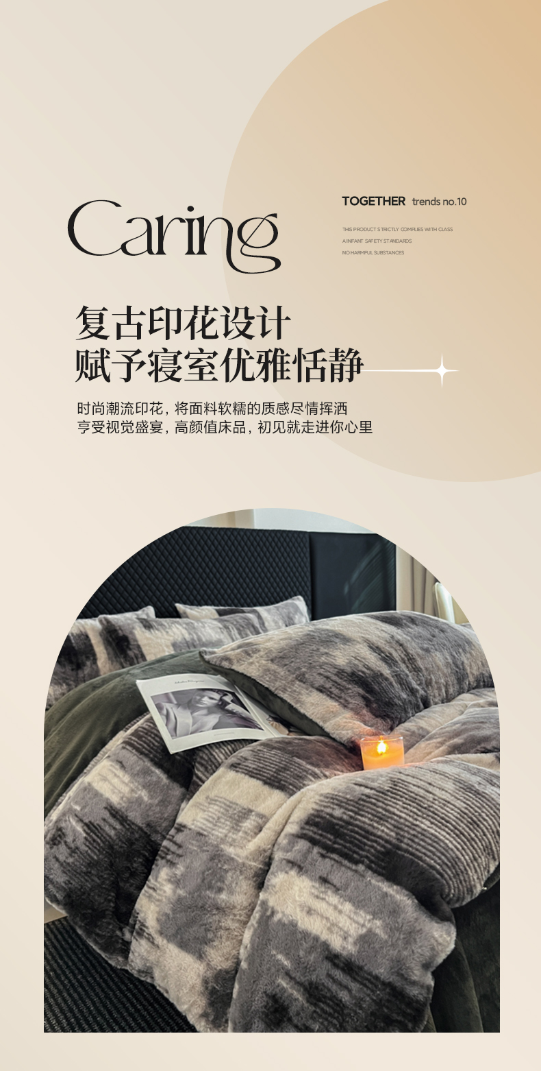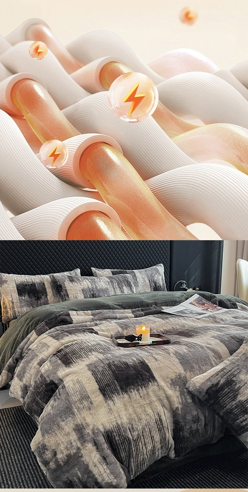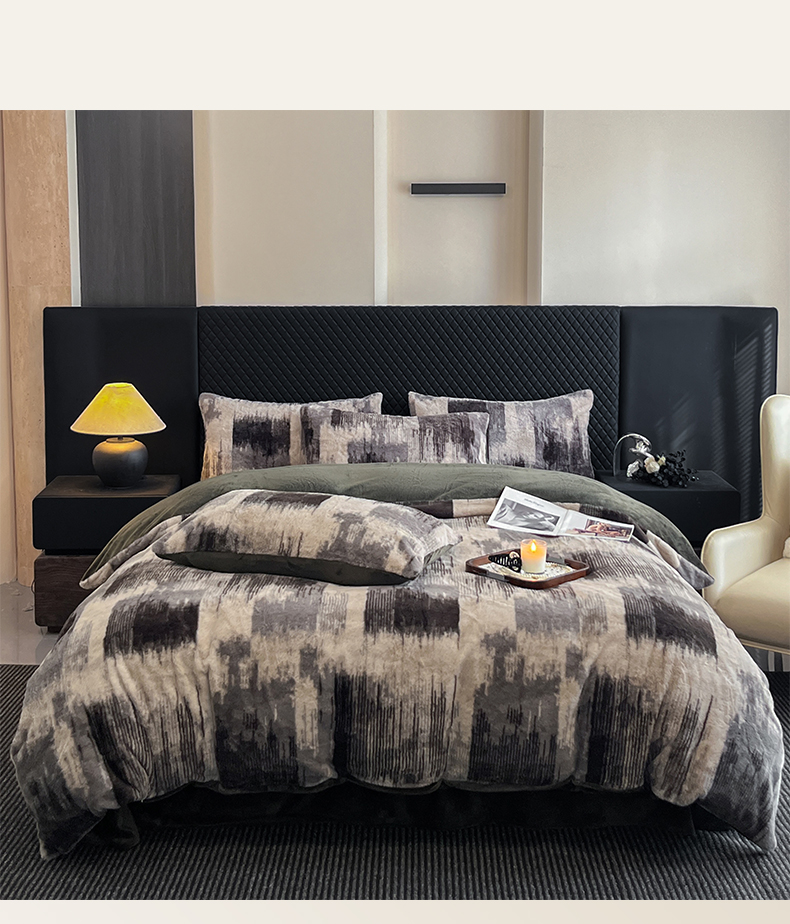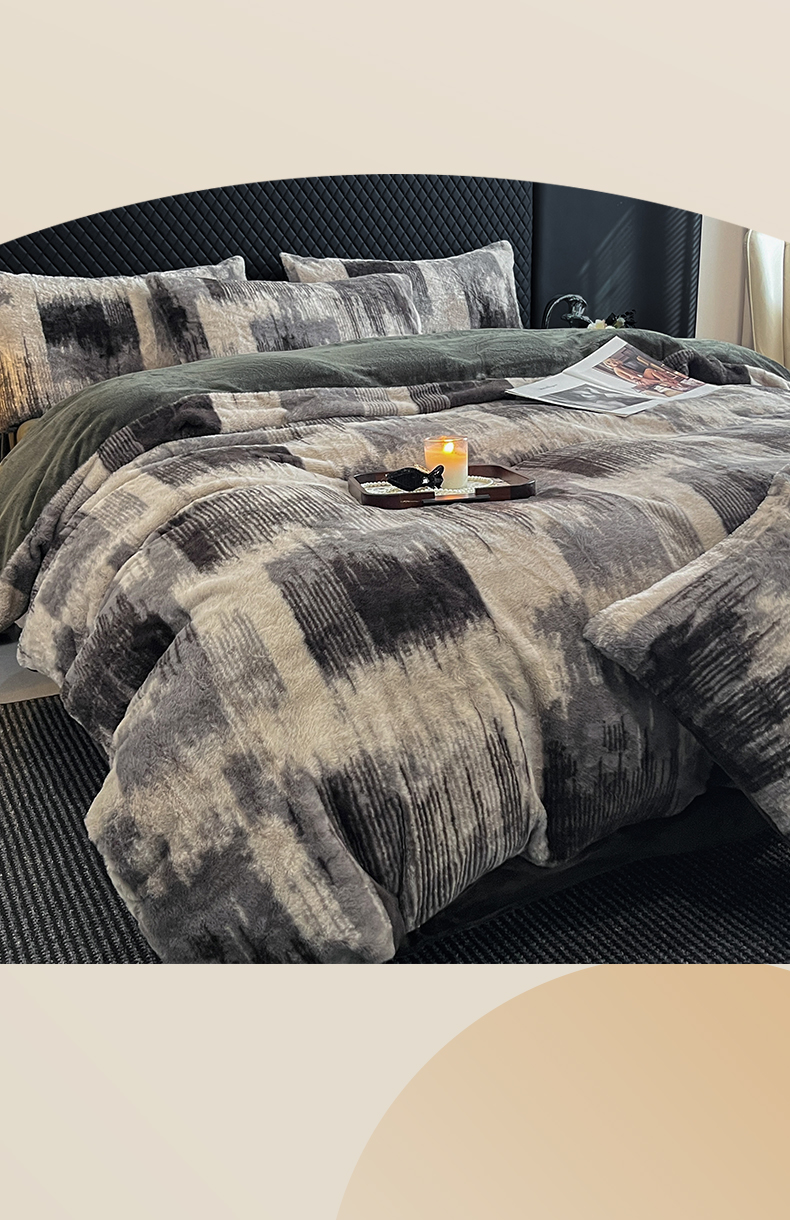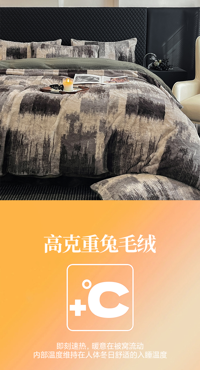 商品名称:民新家纺 2025新款兔毛绒印花简约款四件套 简约款-流金岁月