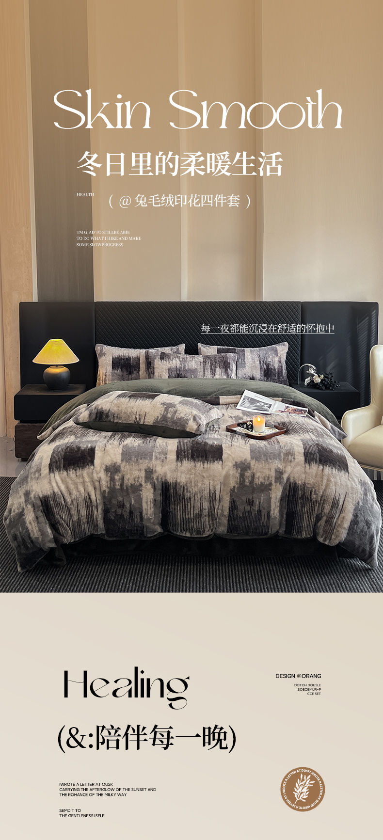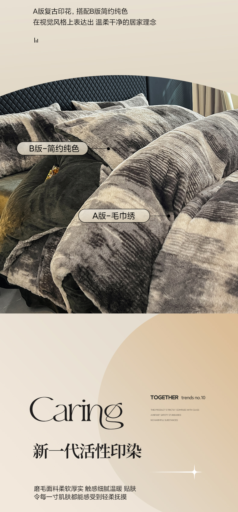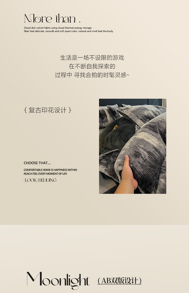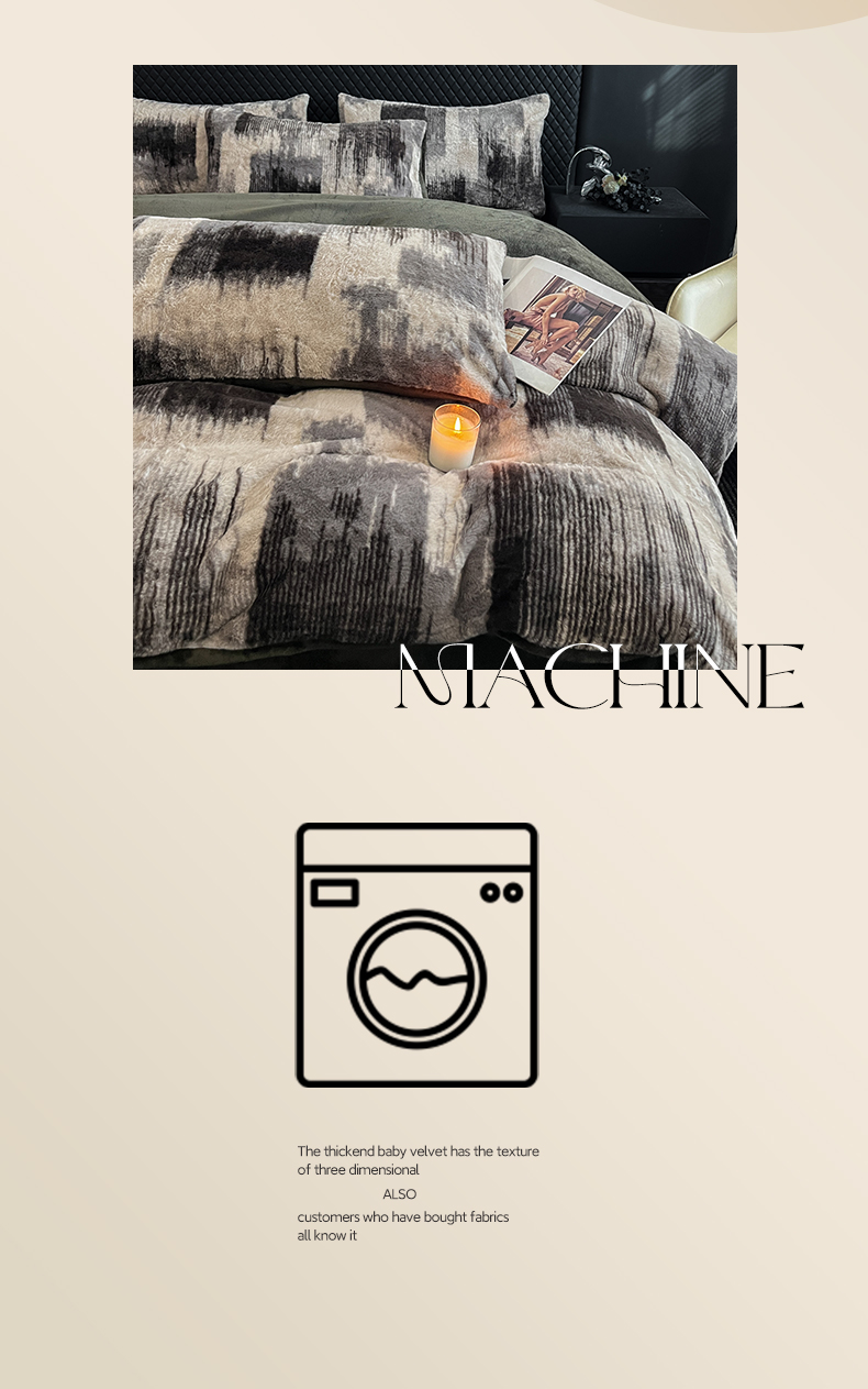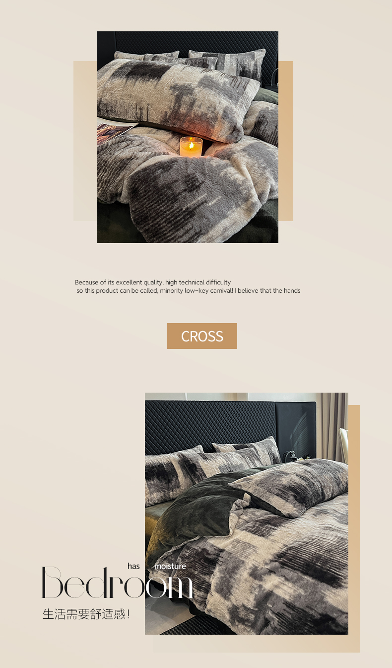 商品名称:民新家纺 2025新款兔毛绒印花简约款四件套 简约款-流金岁月
