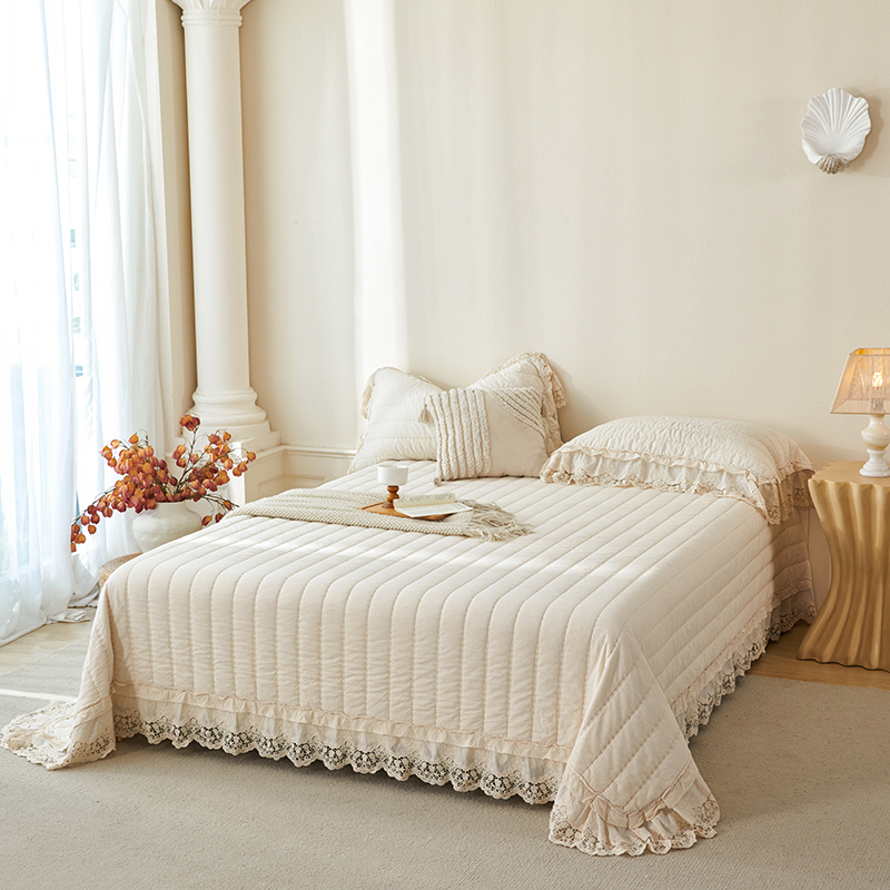 (总)桂雅居 2025新款舒适麻棉麻蕾丝花边单床盖床盖单件,海棠红,栗壳色,麻本色,烟墨灰,组合图仅供展示不可下单,手拎袋包装,清婉花语-灰,秋意-红,素锦-咖