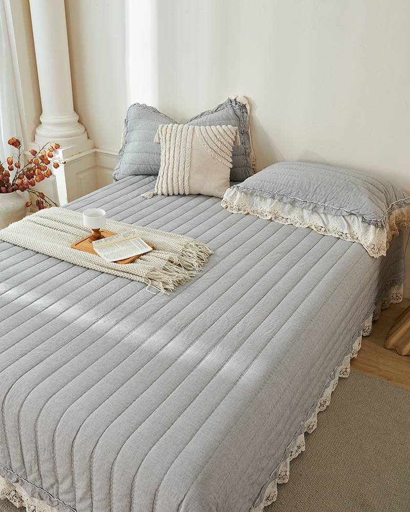 (总)桂雅居 2025新款棉麻三层纱加厚床盖三件套 (会员减10,最低控价券后298),哥伦布,米字格,如梦,太阳花,叶之峰,云上,组合一,组合二