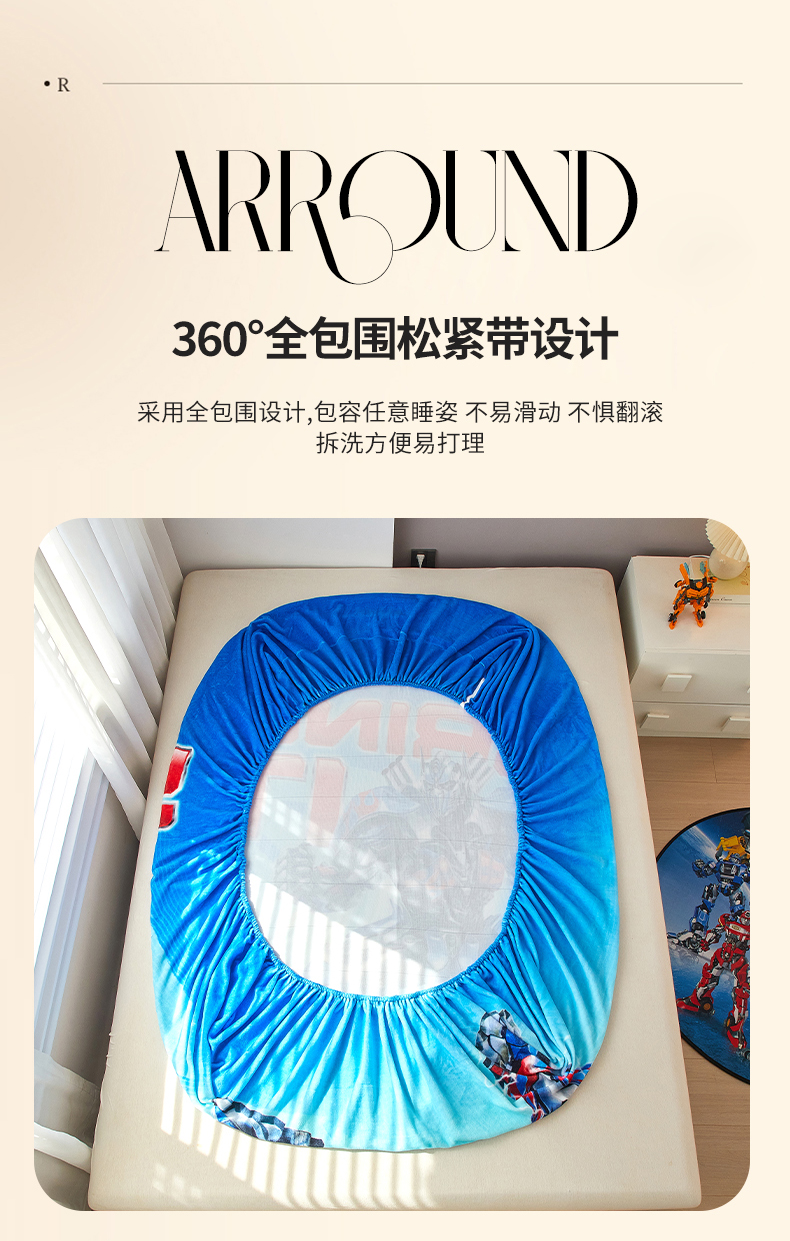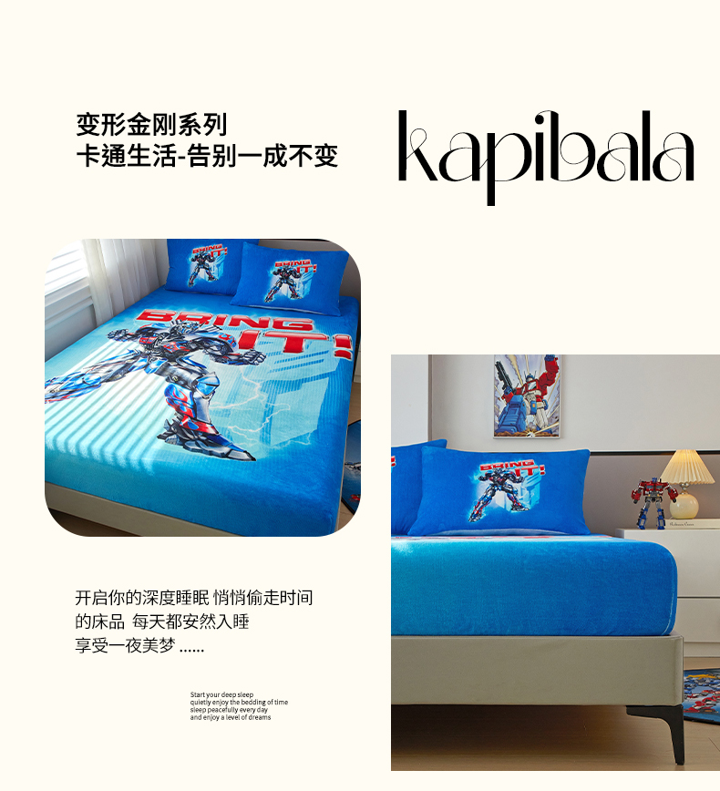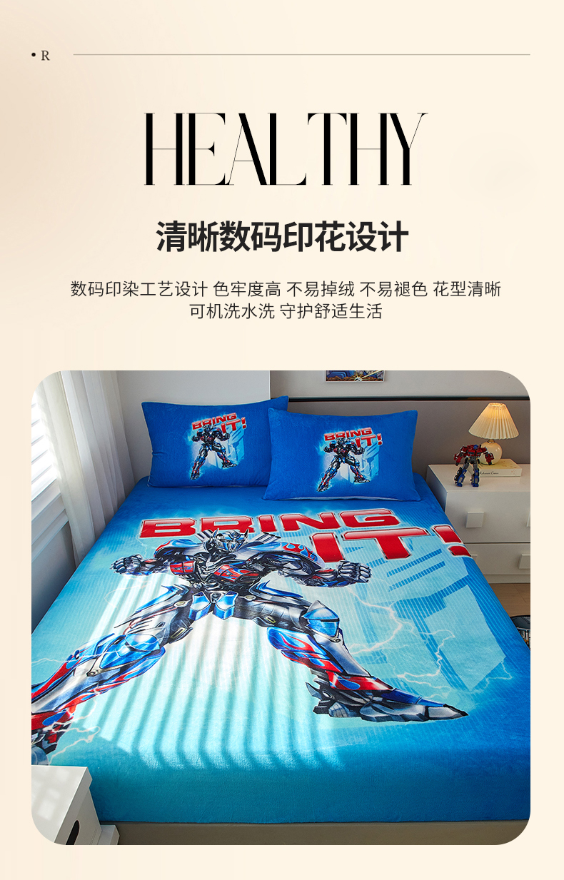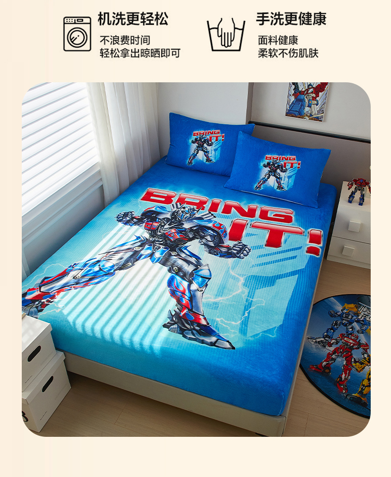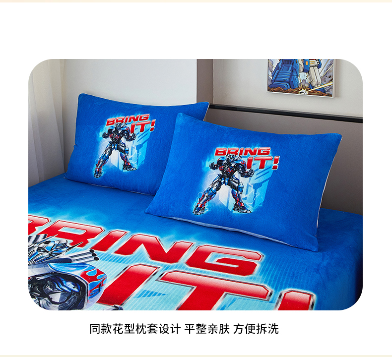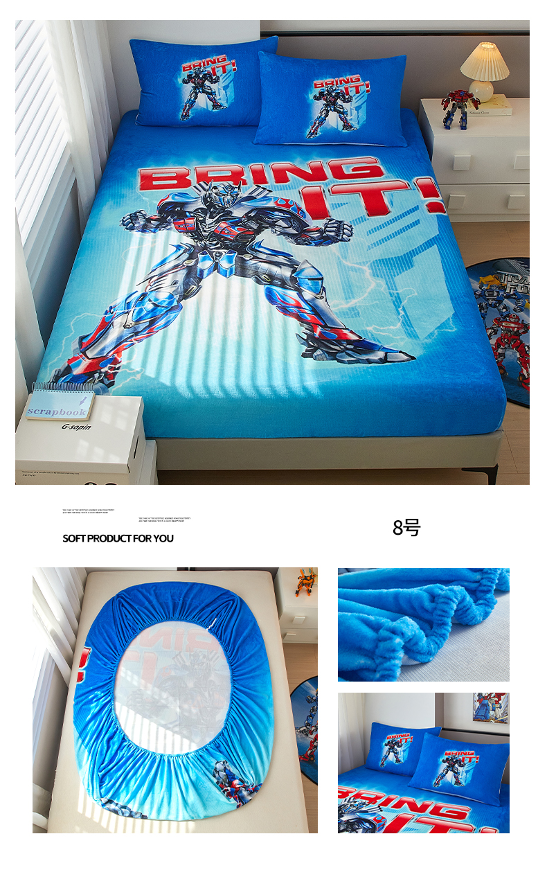 商品名称:蘭菲家纺 2025新款高克重亲肤保暖牛奶绒单品床笠-变形金刚 8号