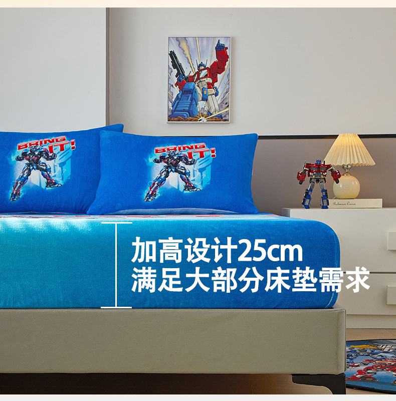蘭菲家纺 2025新款高克重亲肤保暖牛奶绒单品床笠-变形金刚 8号