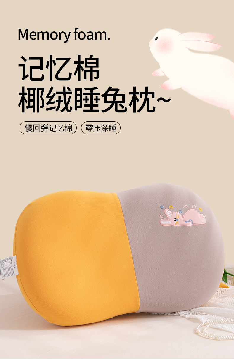(总)仁宇枕业 2025新款新品椰蓉卡通记忆枕头拼色仙女兔小恐龙儿童低枕记忆枕头枕芯