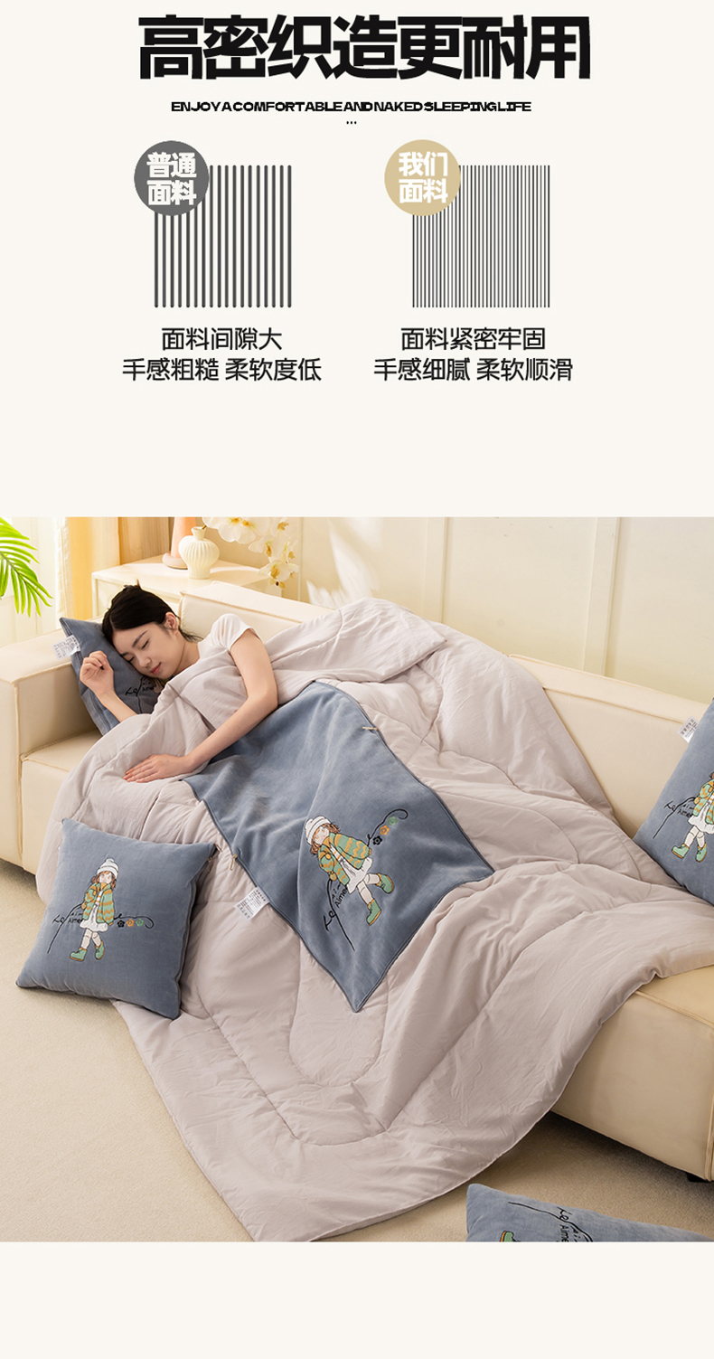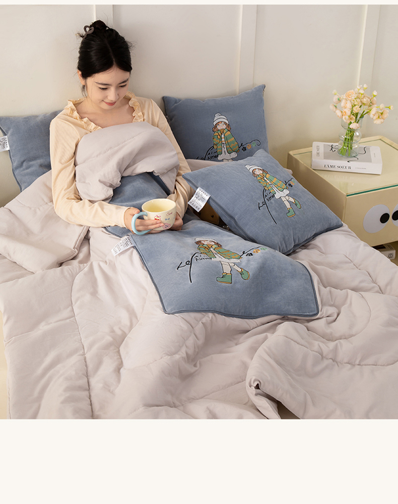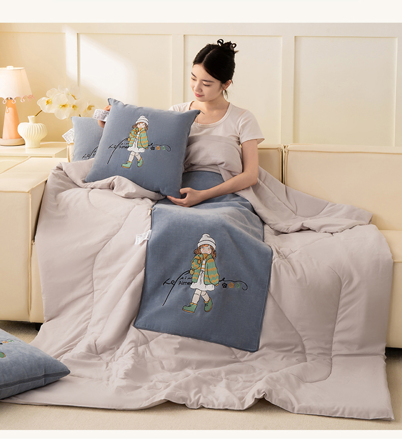 多今家纺 2025新款水洗棉雪尼尔刺绣抱枕被子-艾米糖系列 艾米糖-远天蓝
