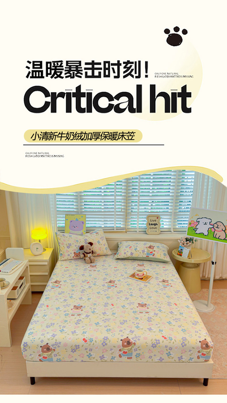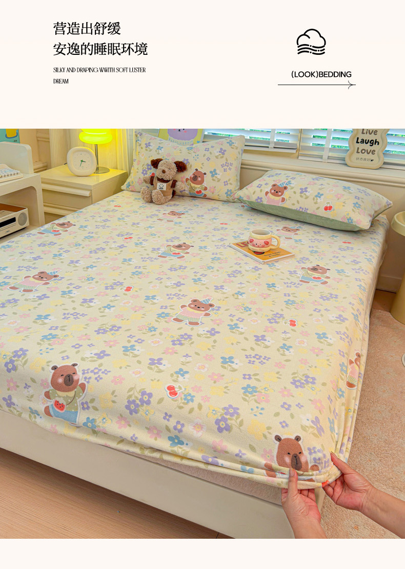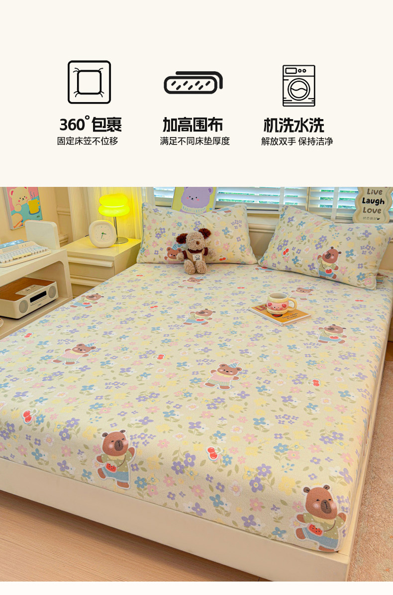 慕澄家纺 2025新款牛奶绒印花床笠床笠单品 床笠-快乐卡皮