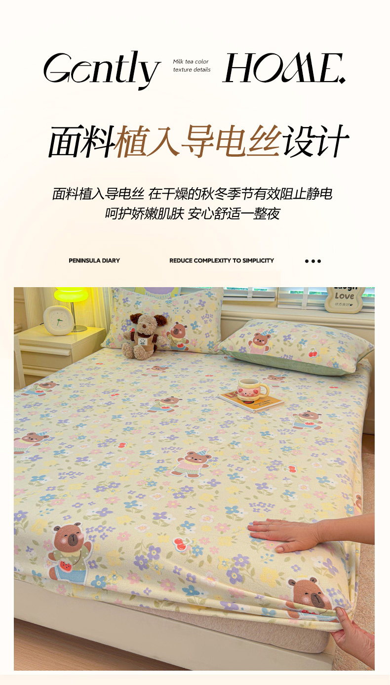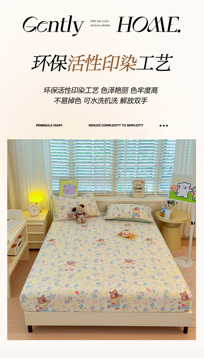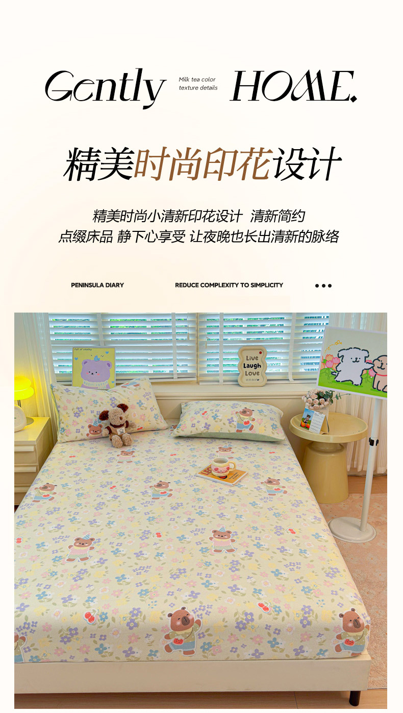 • 91家纺网 家纺一手货源 找家纺 慕澄家纺 2025新款牛奶绒印花床笠床笠单品 床笠-快乐卡皮