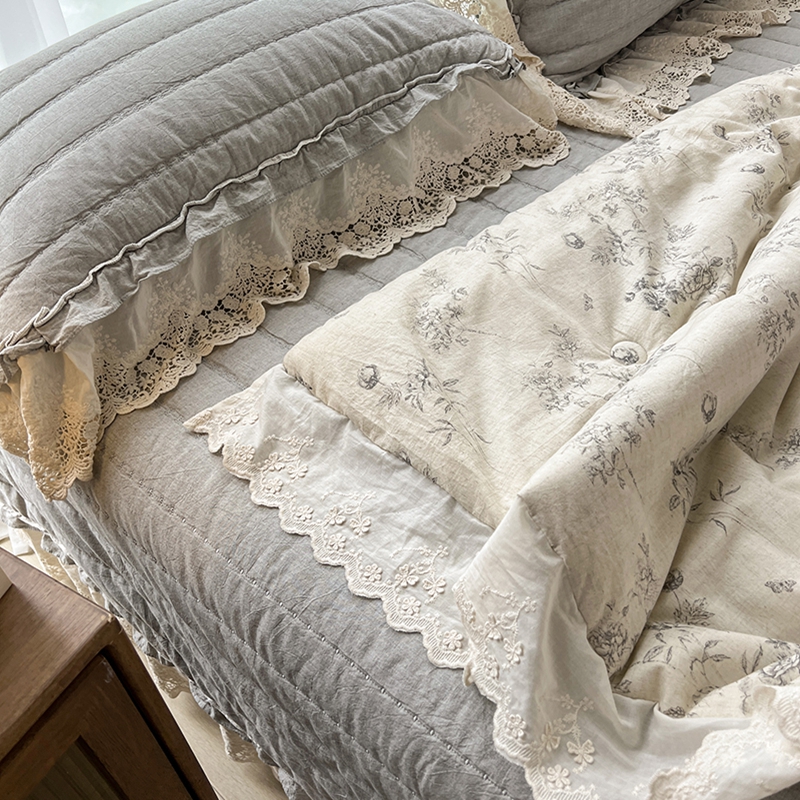 (总)桂雅居 2025新款舒适麻棉麻蕾丝花边单床盖床盖单件,海棠红,栗壳色,麻本色,烟墨灰,组合图仅供展示不可下单,手拎袋包装,清婉花语-灰,秋意-红,素锦-咖