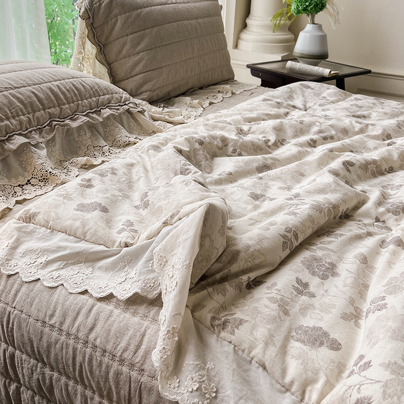 (总)桂雅居 2025新款舒适麻棉麻数码印花蕾丝花边懒人被被子被芯,时雨灰,栗壳色,烟墨灰,麻本色,素锦咖,映雪咖,组合