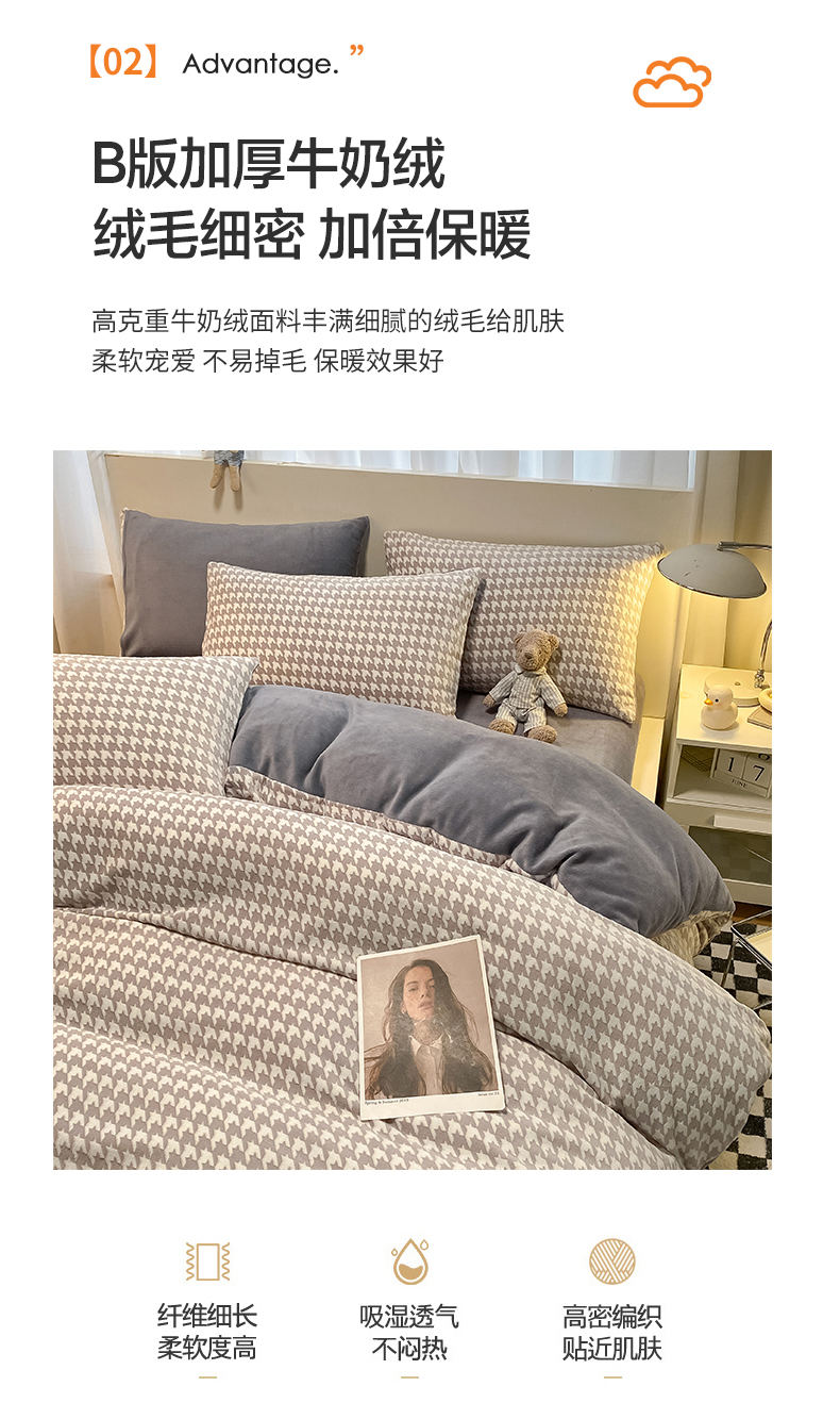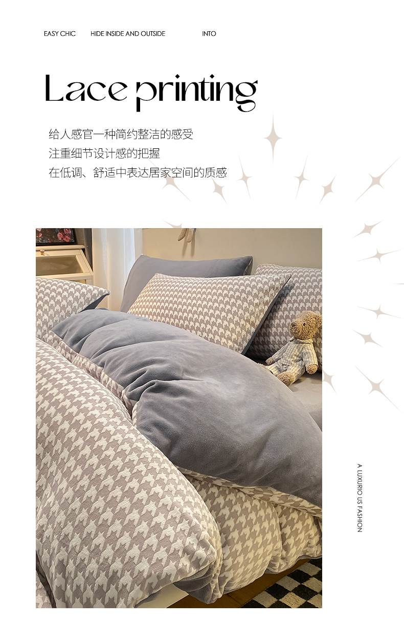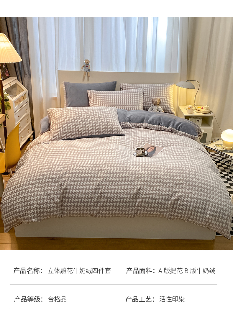 当前位置: 91家纺网 > 商品网购 > 床品套件 > 四件套 > 牛奶绒四件套 > 如一 2025新款3D雕花牛奶绒四件套 千鸟格灰