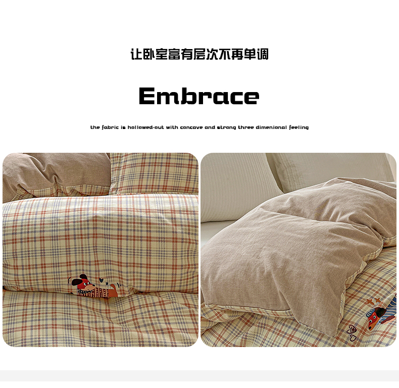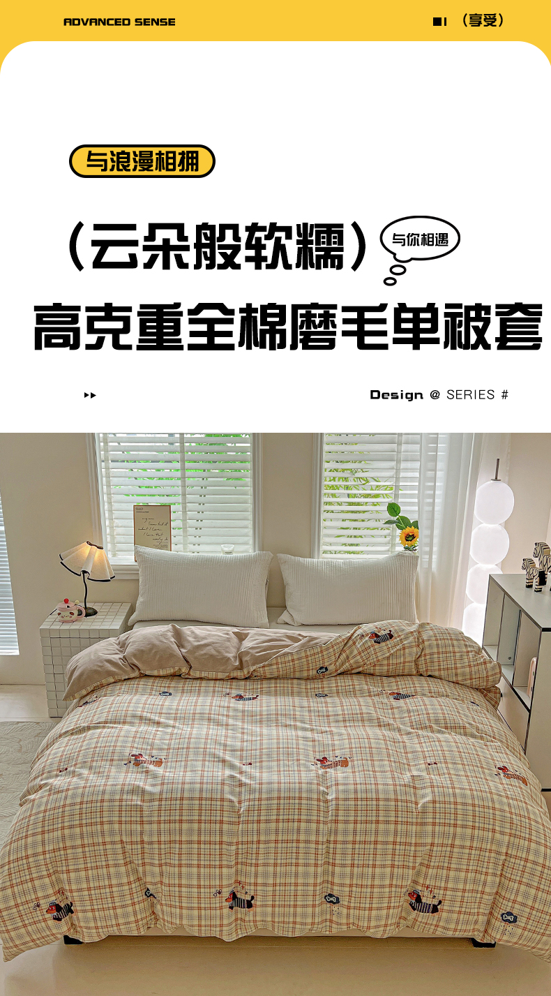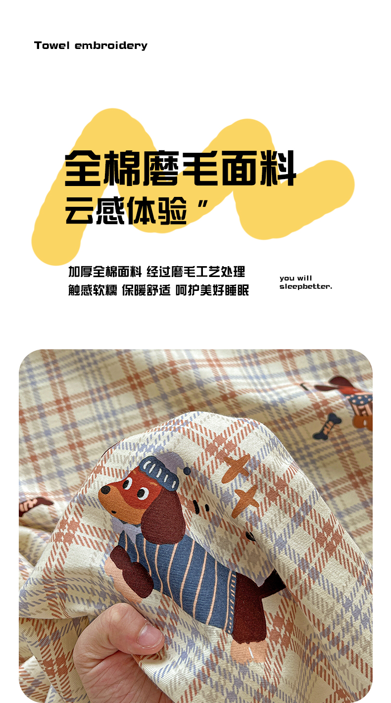 • 91家纺网 家纺一手货源 找家纺 依庭 2025新款高克重全棉纯棉磨毛印花单被套 奶油小狗
