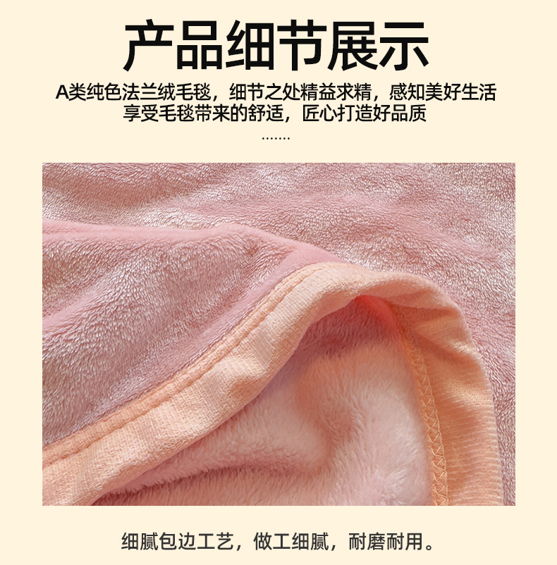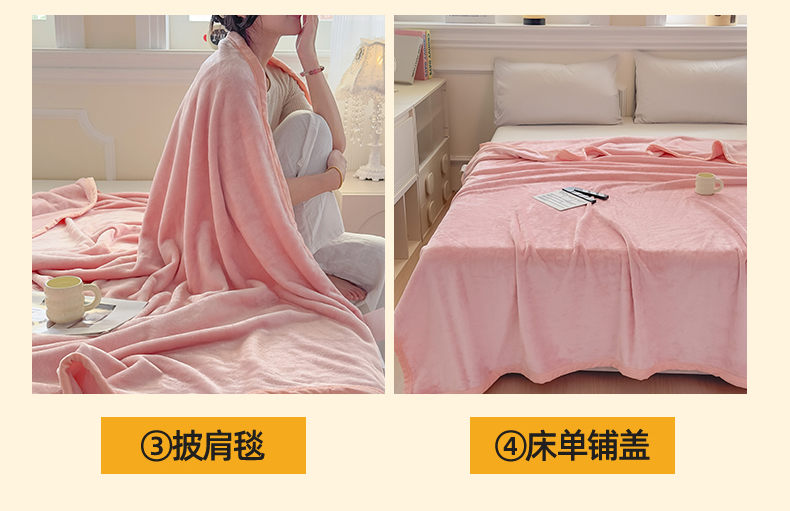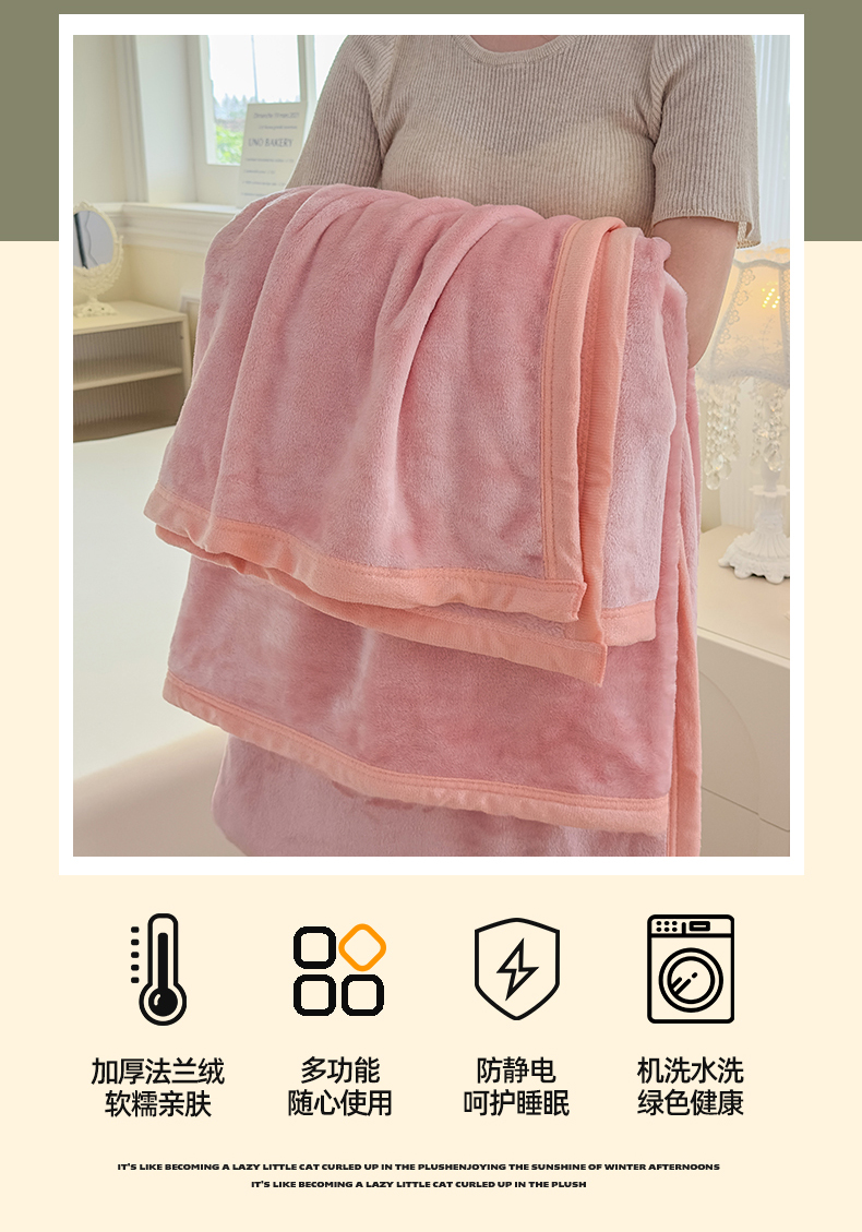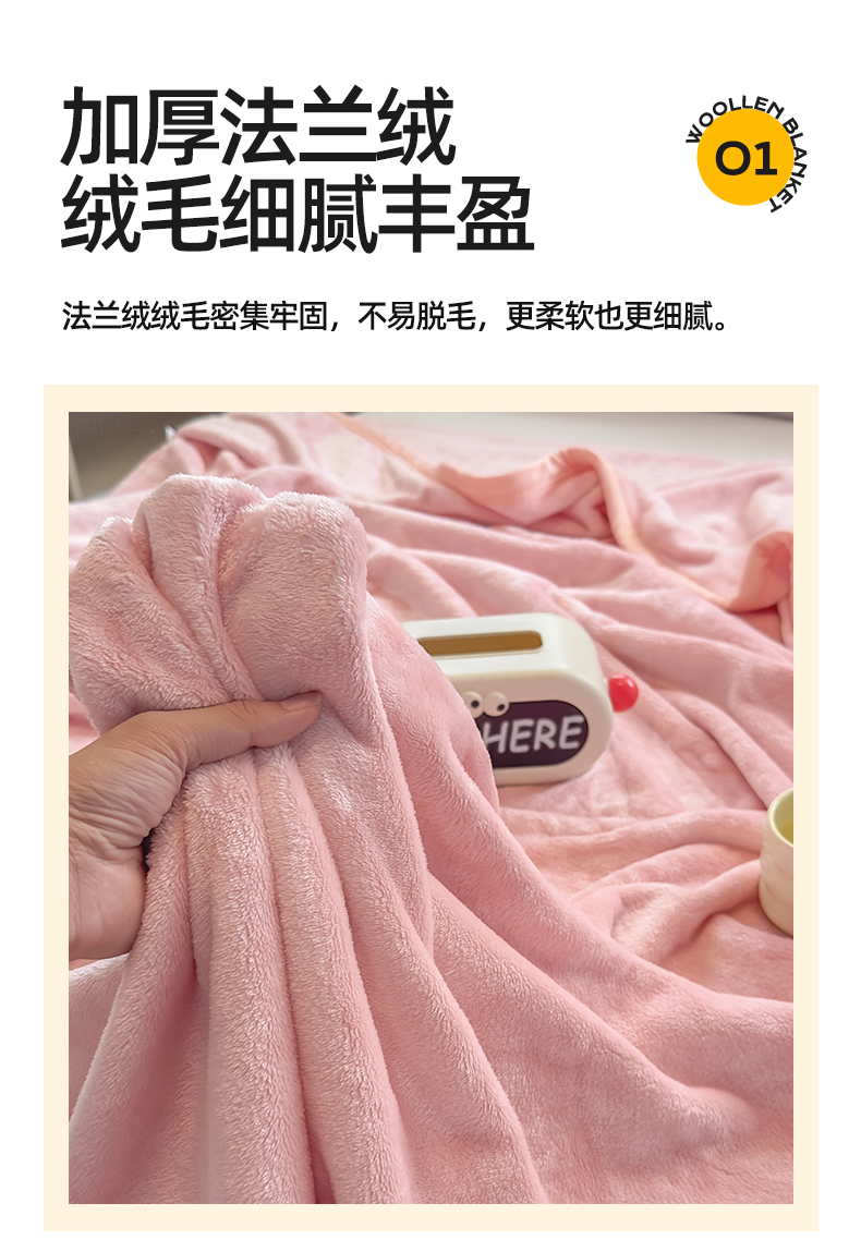 商品名称:予梦家纺 2025新款320g高克重加厚法兰绒毛毯办公室午休毯 少女粉