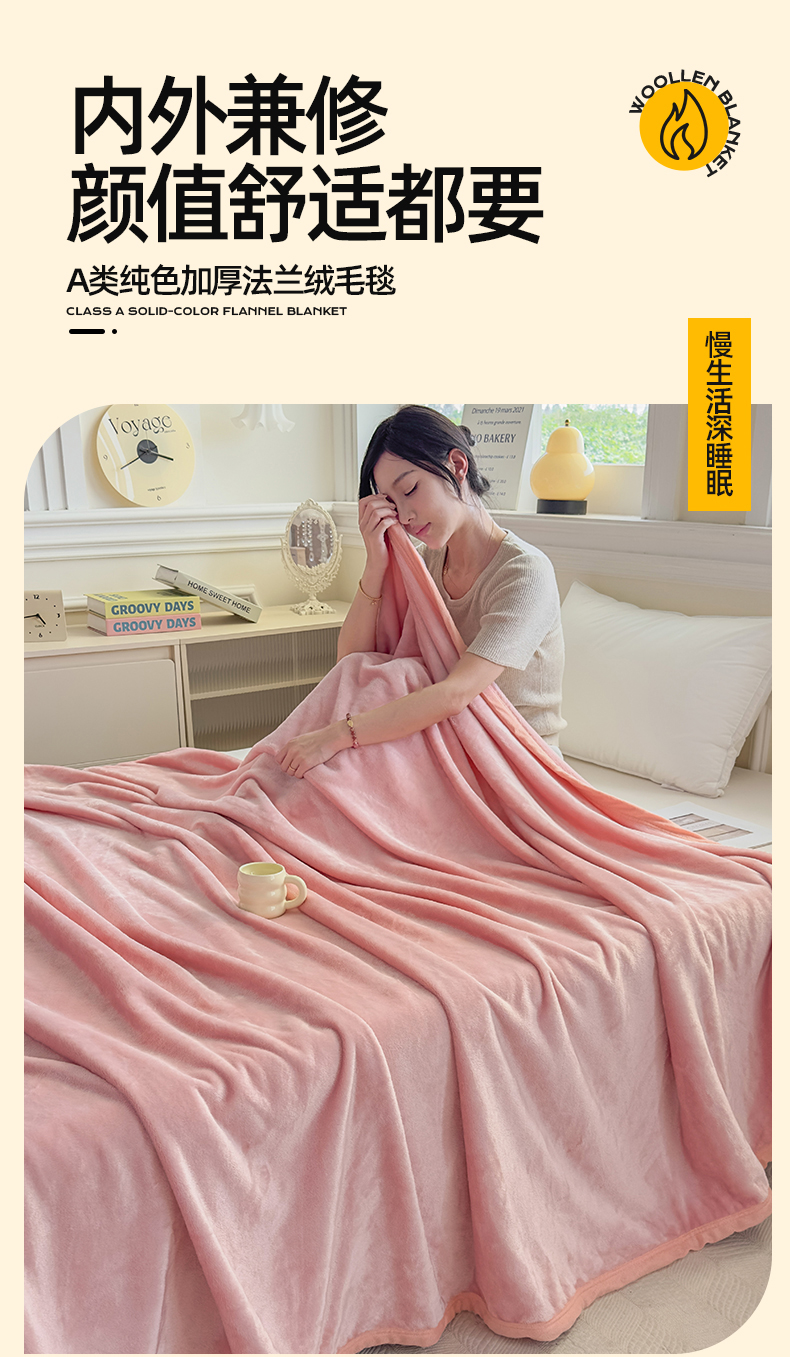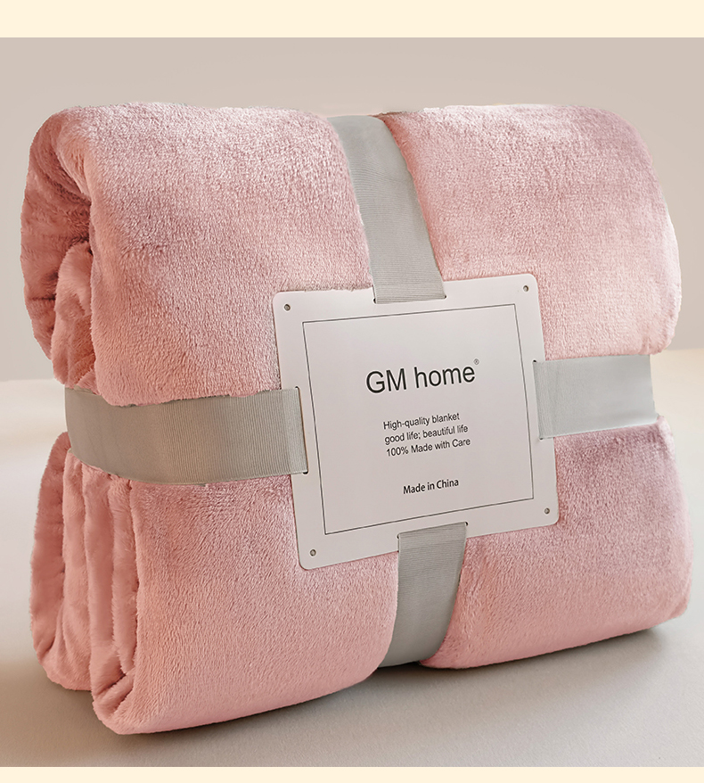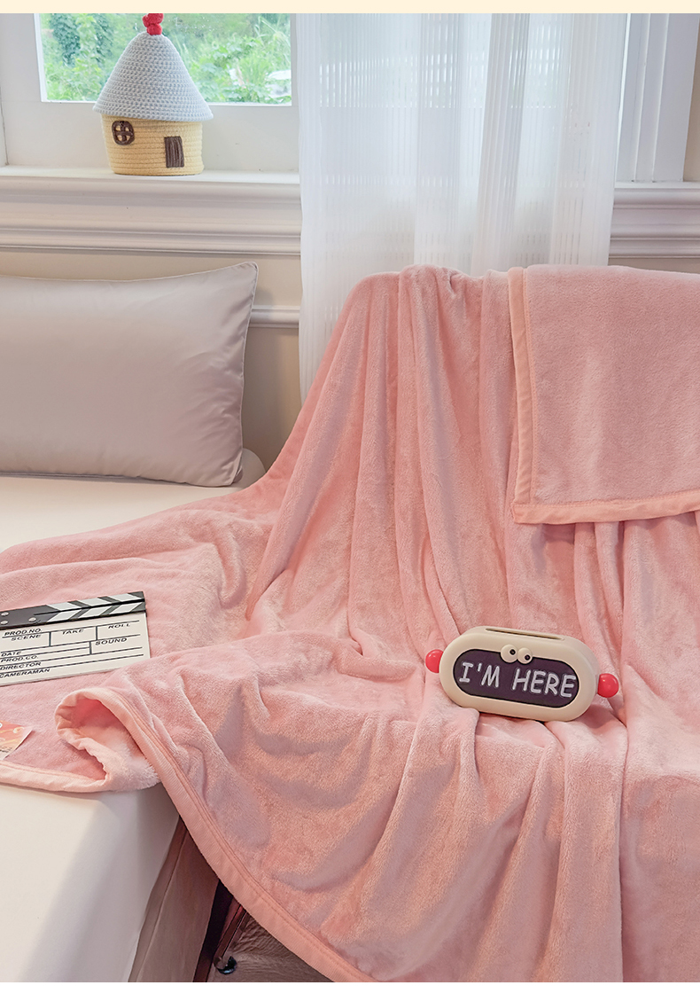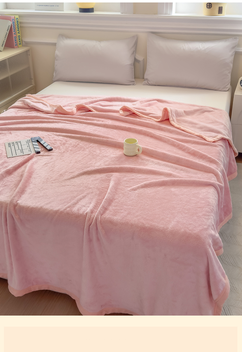 予梦家纺 2025新款320g高克重加厚法兰绒毛毯办公室午休毯 少女粉