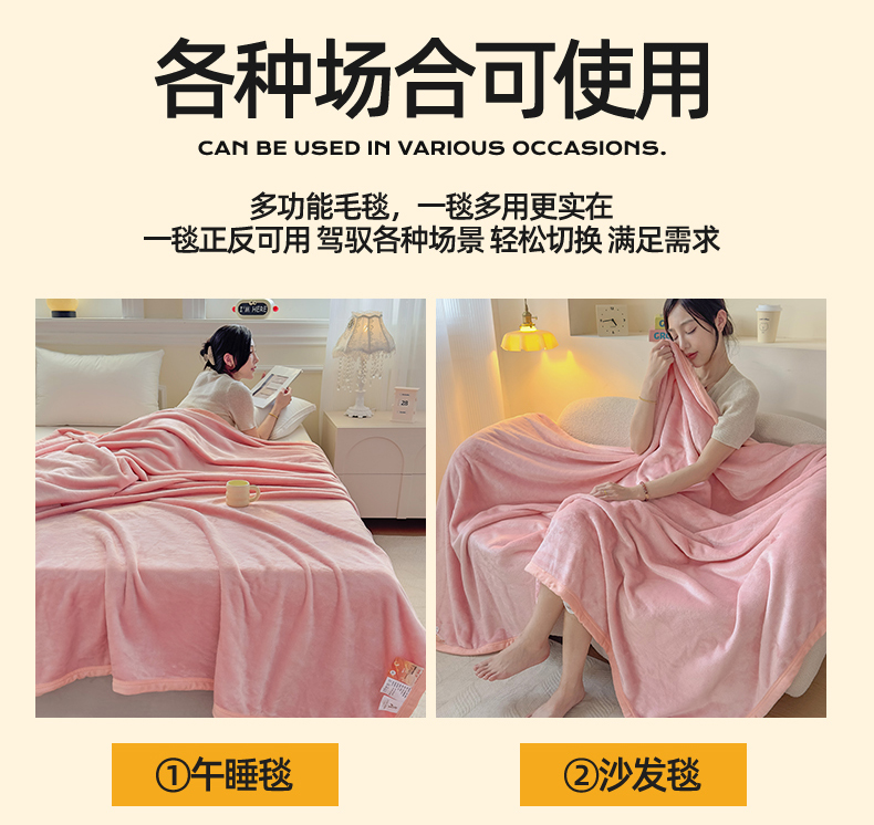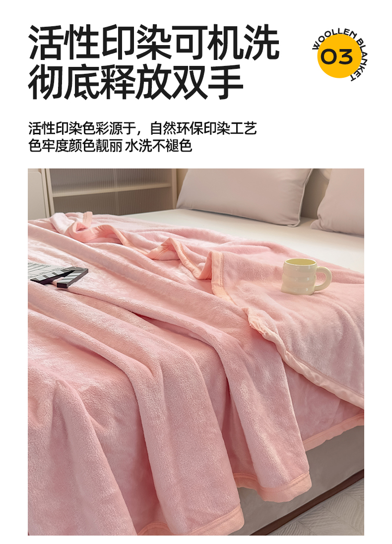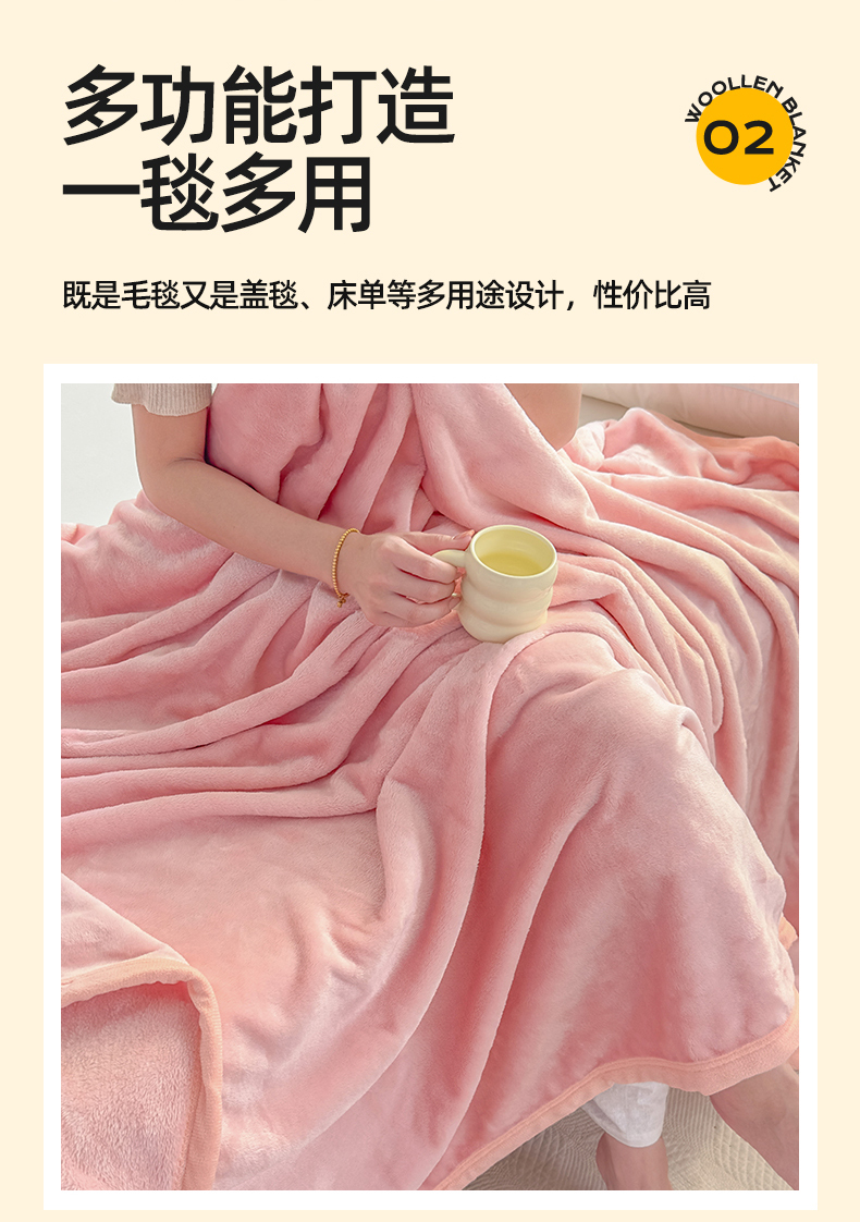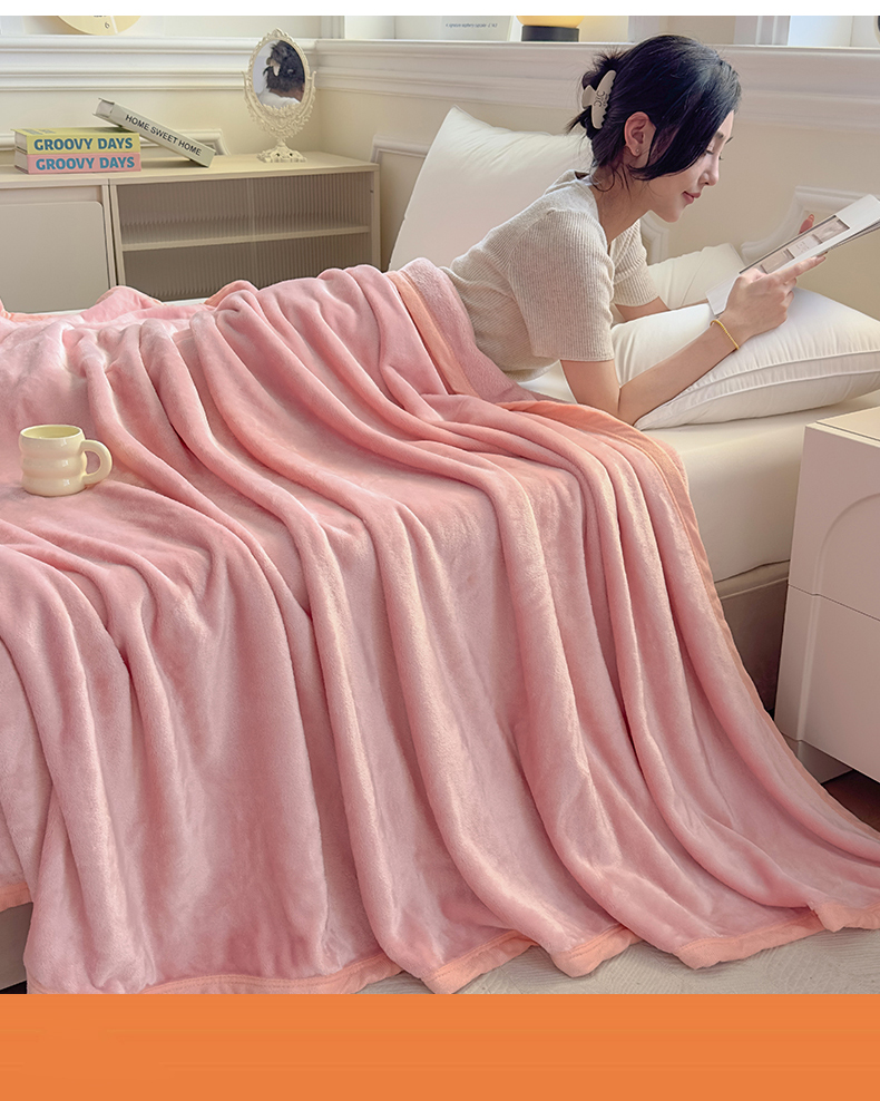 予梦家纺 2025新款320g高克重加厚法兰绒毛毯办公室午休毯 少女粉
