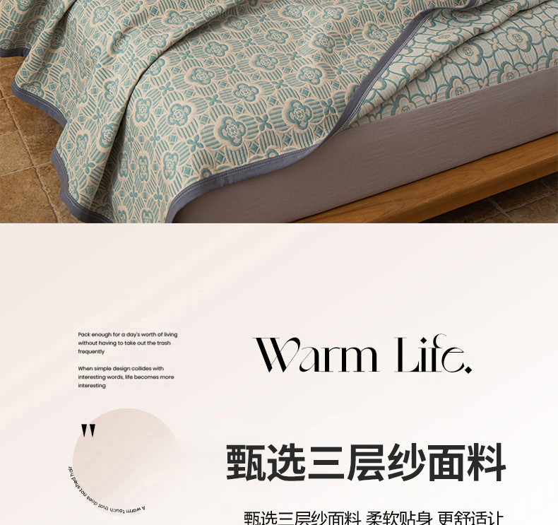 (总)萌飞 2025新款A类三层纱纱布毛巾被床盖,卡曼洛-深棕,慕白-锡器灰,可丽之彩-亚丁绿,慕白-碟翅蓝,叶美-赤铜棕,卡曼洛-锡器灰,可丽之彩-墨黑,可丽之彩-玫瑰粉,叶趣-深棕
