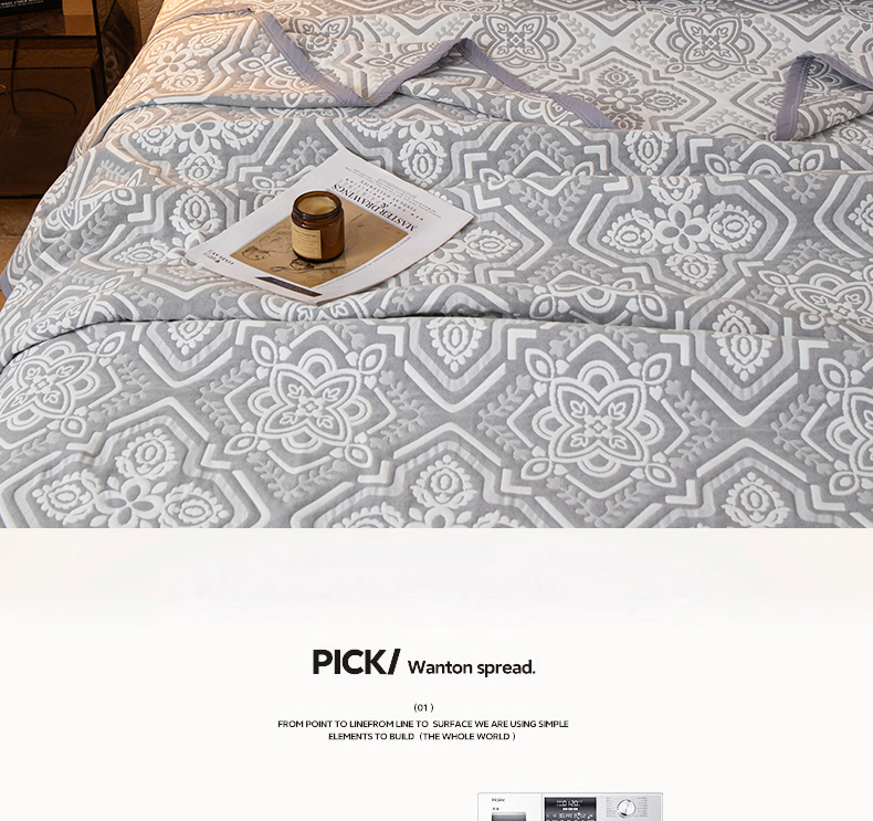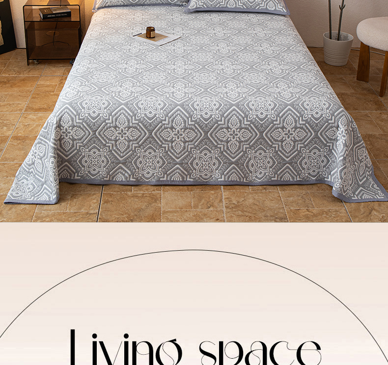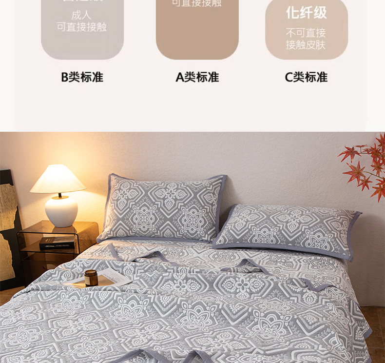 商品名称:萌飞 2025新款A类三层纱纱布毛巾被床盖 卡曼洛-锡器灰