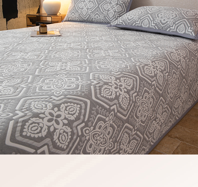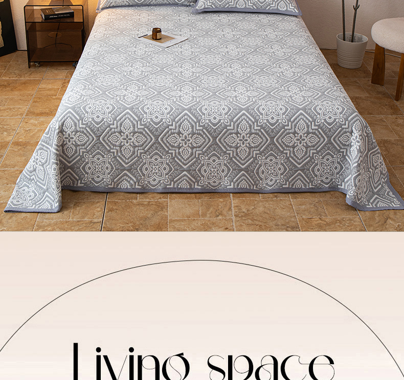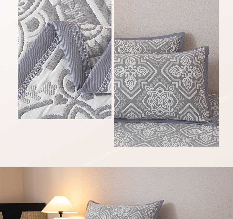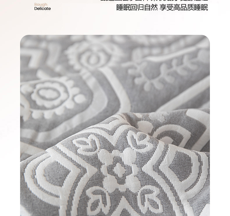 萌飞 2025新款A类三层纱纱布毛巾被床盖 卡曼洛-锡器灰