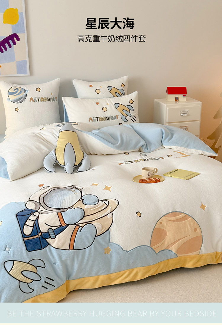 (总)西西家居 2025新款230g牛奶绒四件套-星途闪闪(会员-20元 各平台严格控价劵后不低于318元起!),星途闪闪