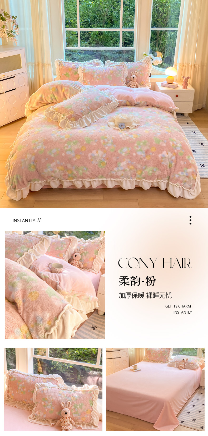 (总)米可 2025新款兔毛绒花边牛奶绒四件套,可爱蝴蝶结-粉,彩色波点,可爱蝴蝶结-咖,玫瑰庄园,梦幻女孩,柔韵-粉,柔韵-蓝,紫色花语