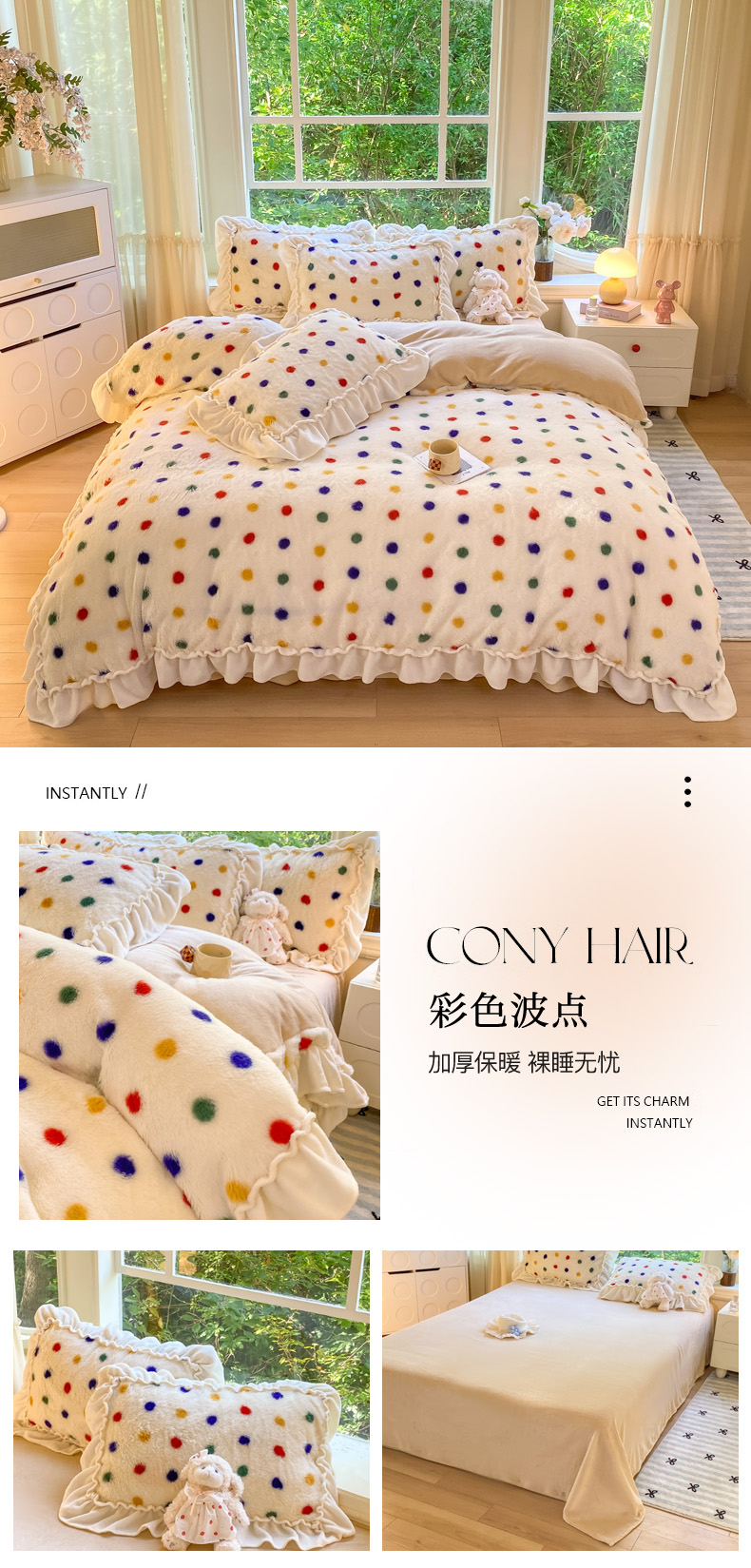 (总)米可 2025秋冬新品混搭波点高克重牛奶绒毛球款单被套,波点-粉,波点-粉(粉床单),波点-蓝,波点-蓝(蓝床单),波点-奶白,波点-紫