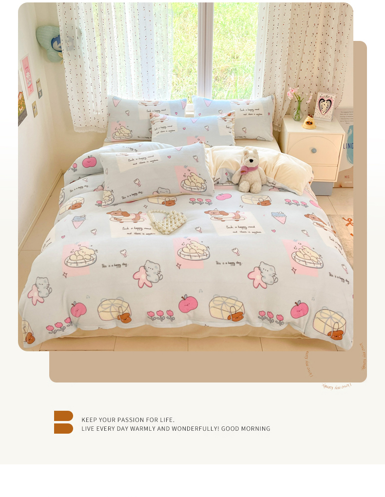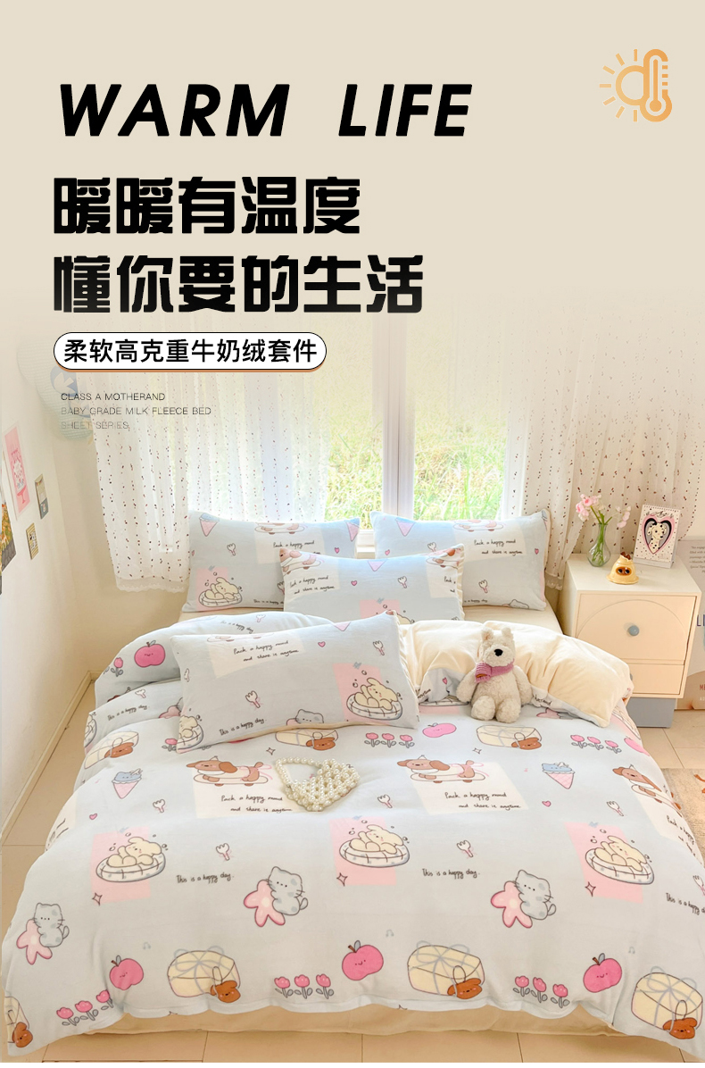 当前位置: 91家纺网 > 商品网购 > 床品套件 > 四件套 > 牛奶绒四件套 > 麦伦家居 2025新款双面200g牛奶绒四件套 惬意时光