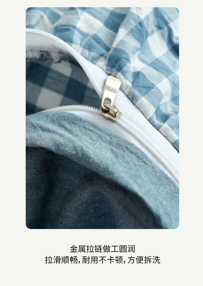 商品名称:珂博家纺 2025新款韩版花边四件套纯棉全棉水洗棉四件套 蓝小格