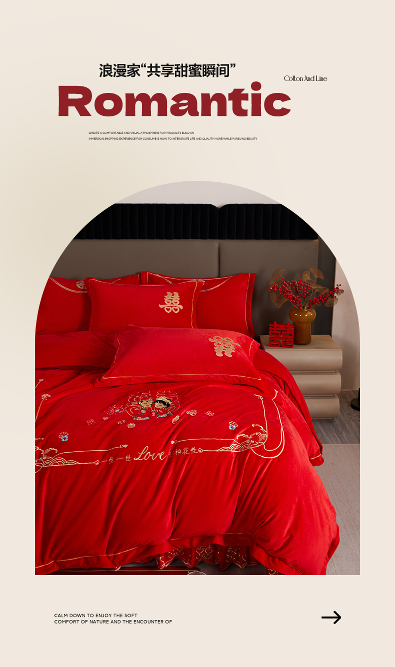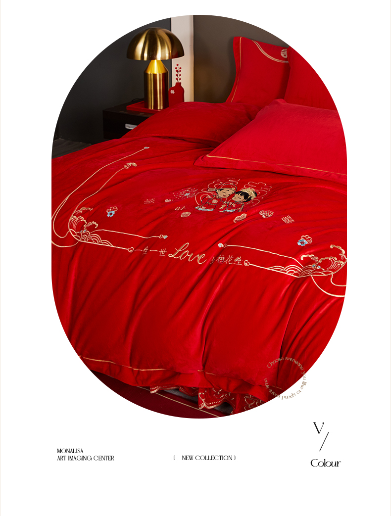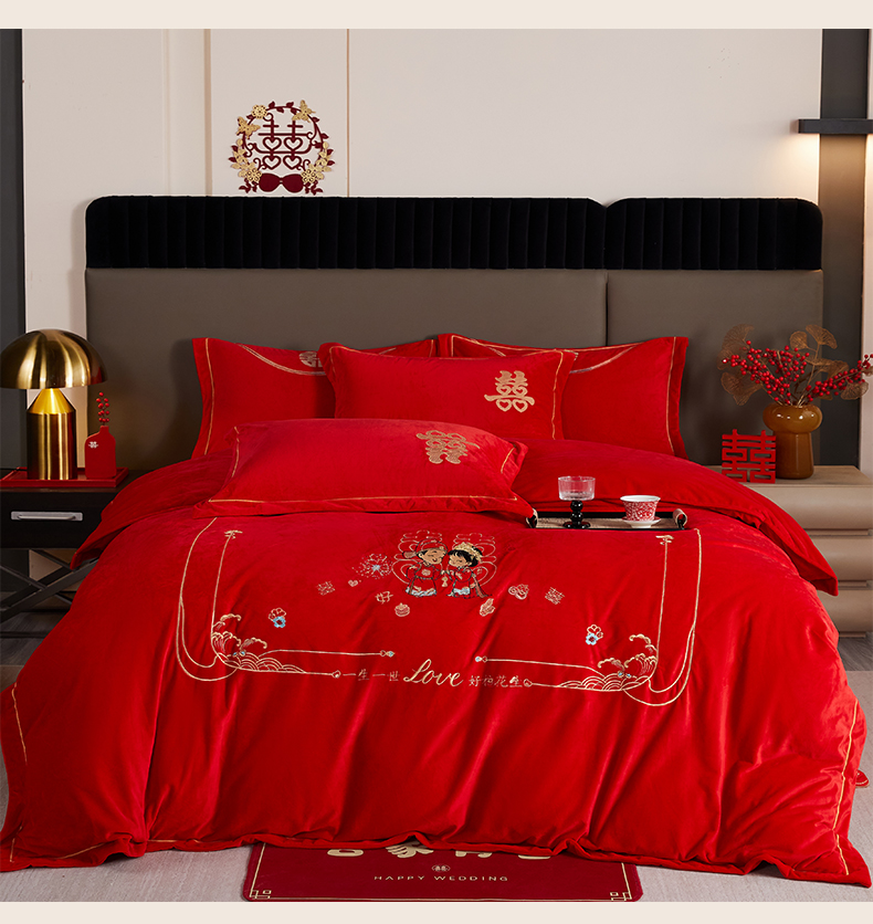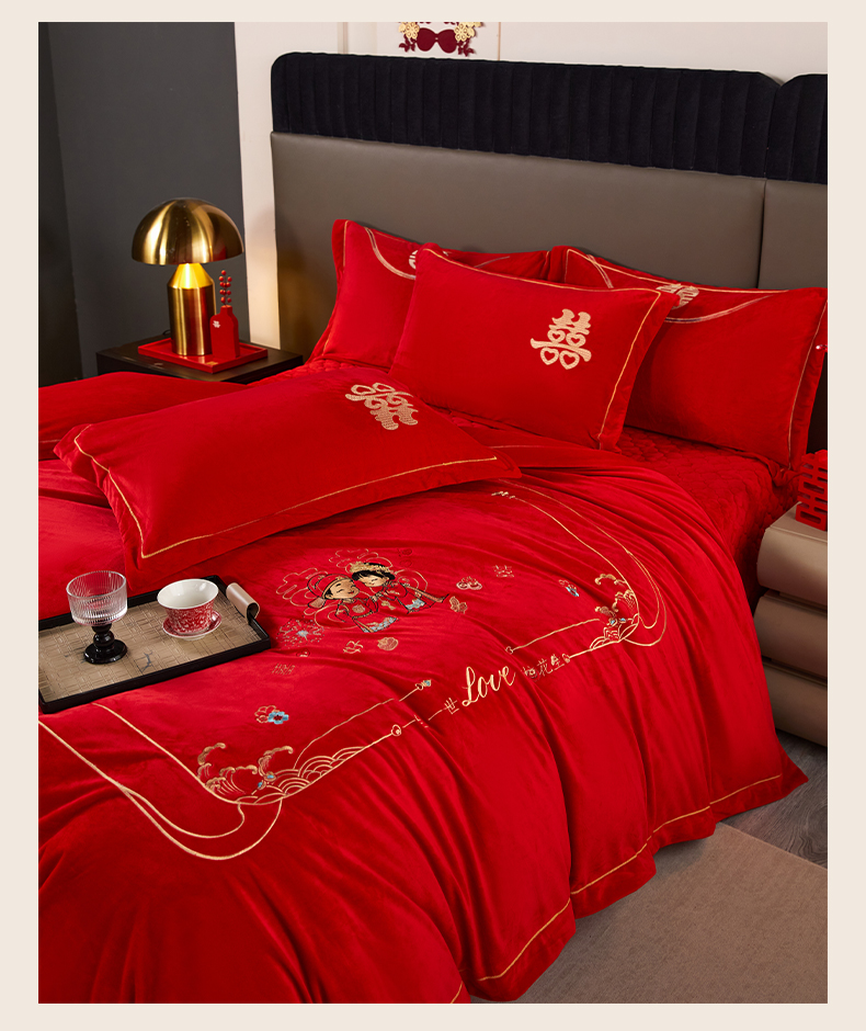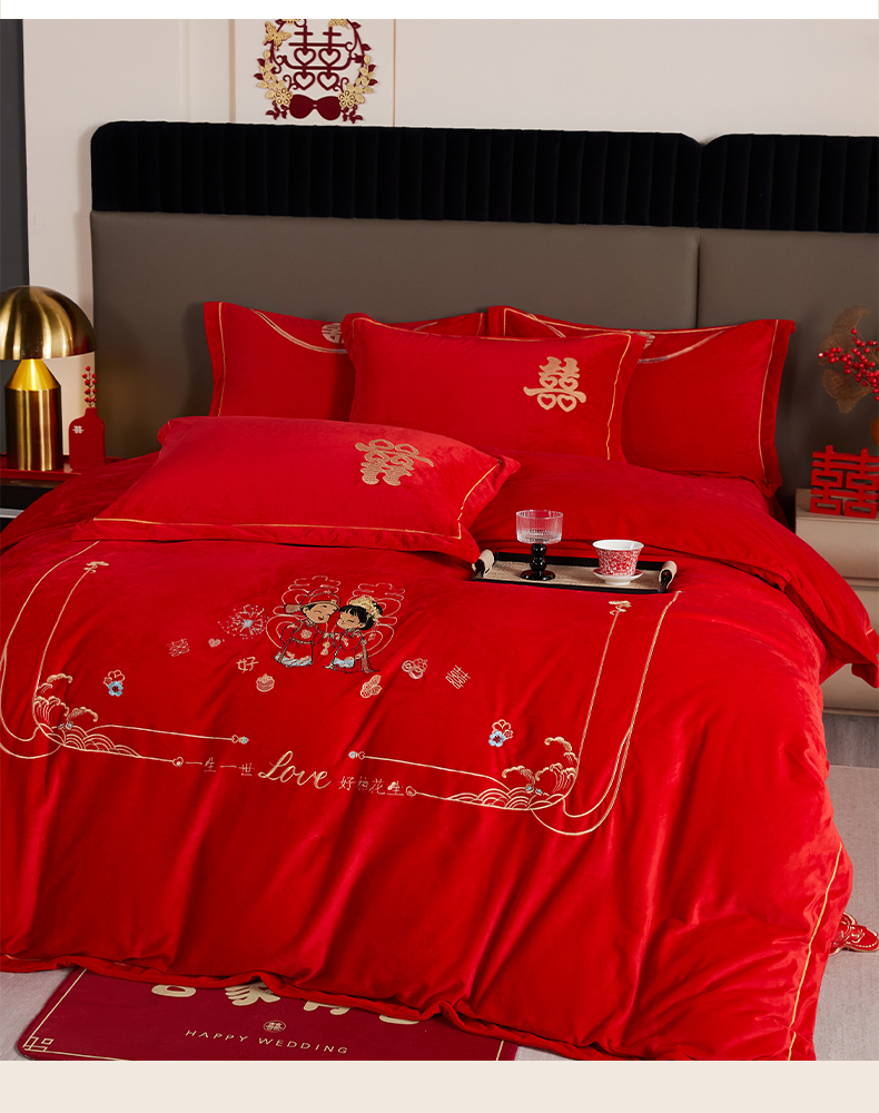 默忆 2025新款婴儿绒刺绣婚庆四件套 好事发生
