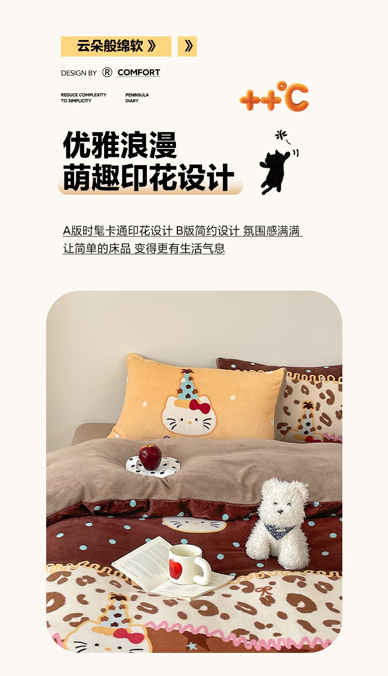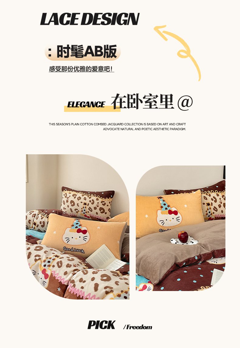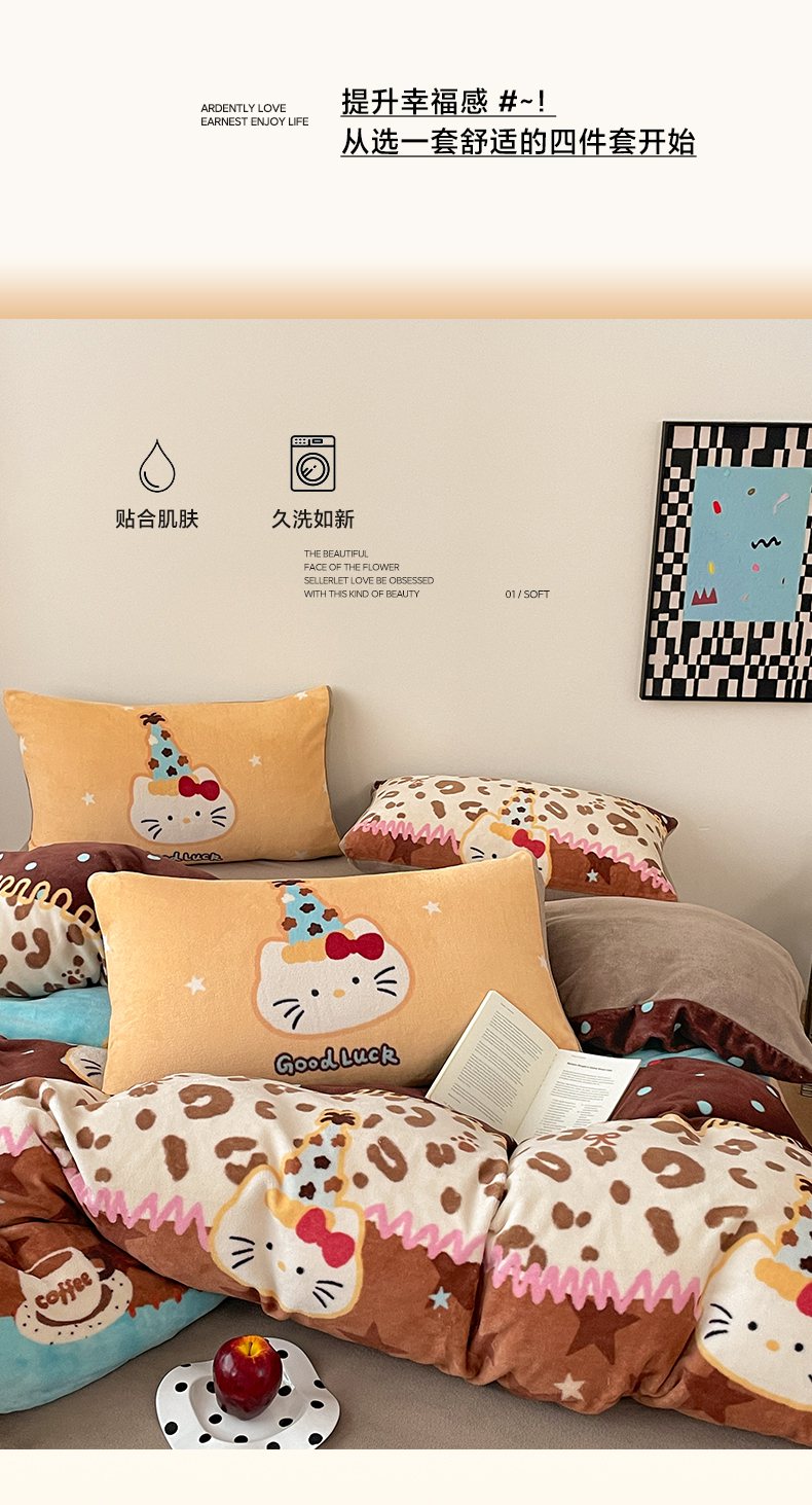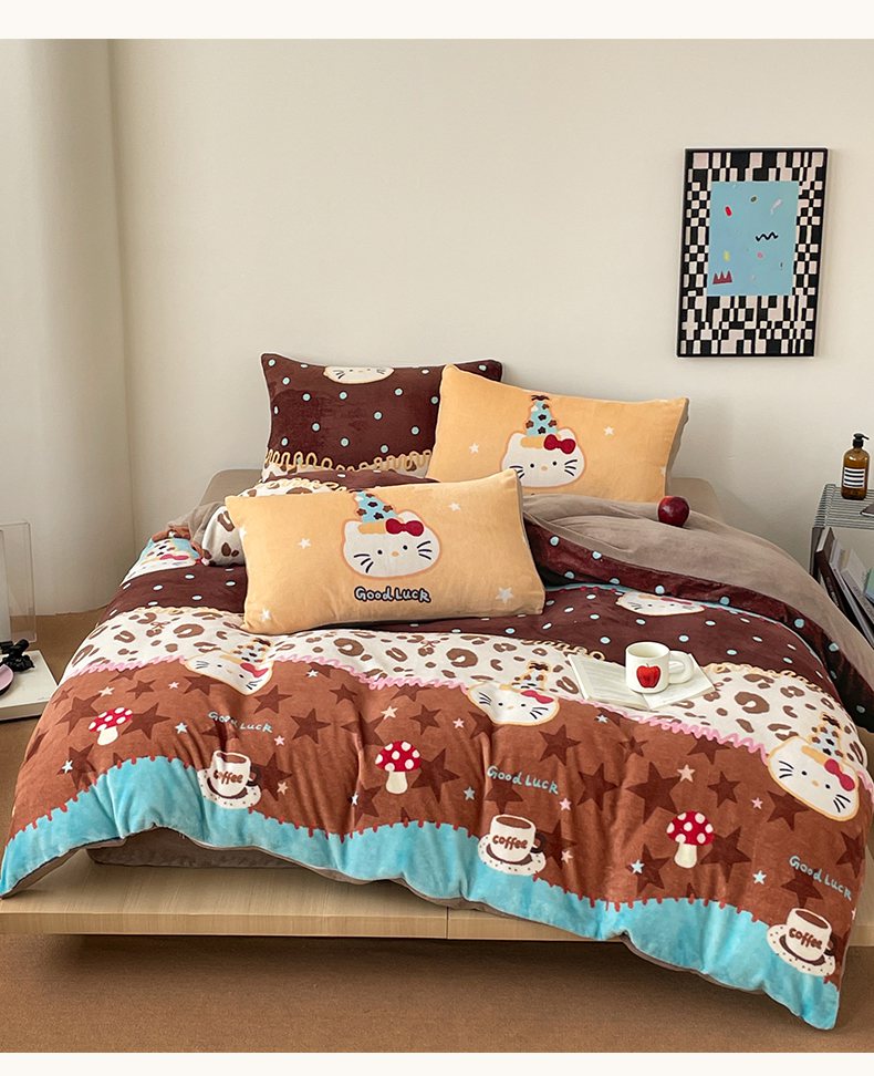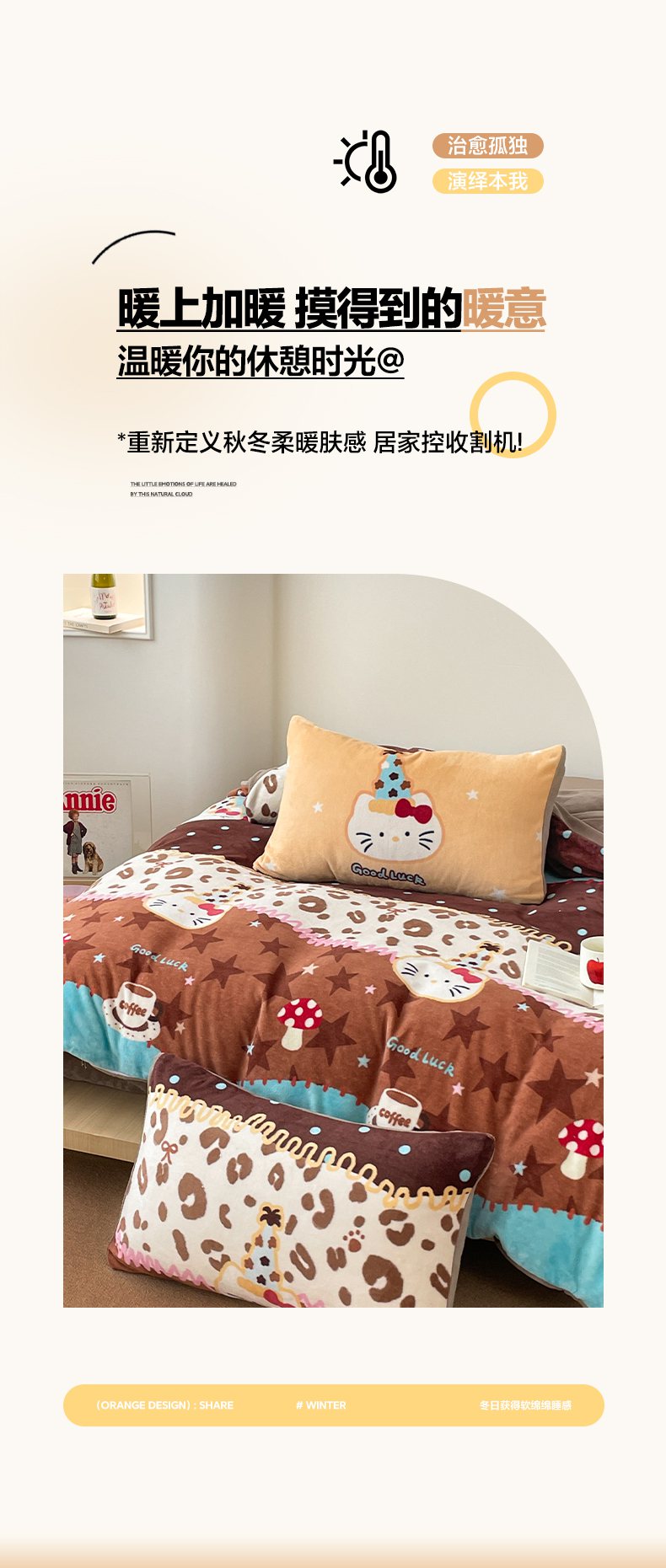 当前位置: 91家纺网 > 商品网购 > 床品套件 > 四件套 > 牛奶绒四件套 > 摩妮卡 2025新款牛奶绒枕套混搭卡通复古床盖四件套 幸运小猫