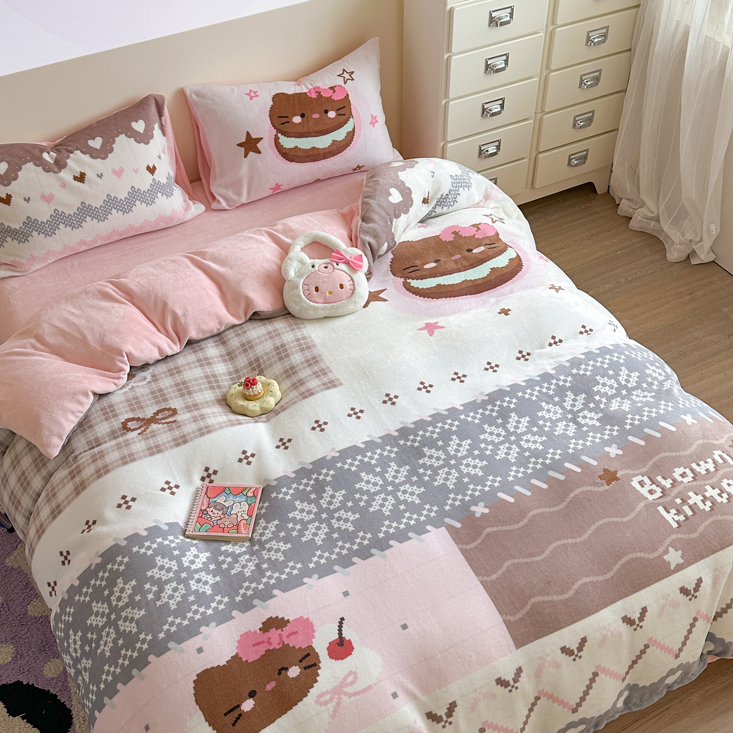 (总)美乐迪家纺 2025新款加厚牛奶绒花边四件套,许愿小狗,小猫的家,香肠狗,头套小兔,甜心派对,甜品小兔,猫咪日记,蓝色小狗,黄油小狗,烘焙熊